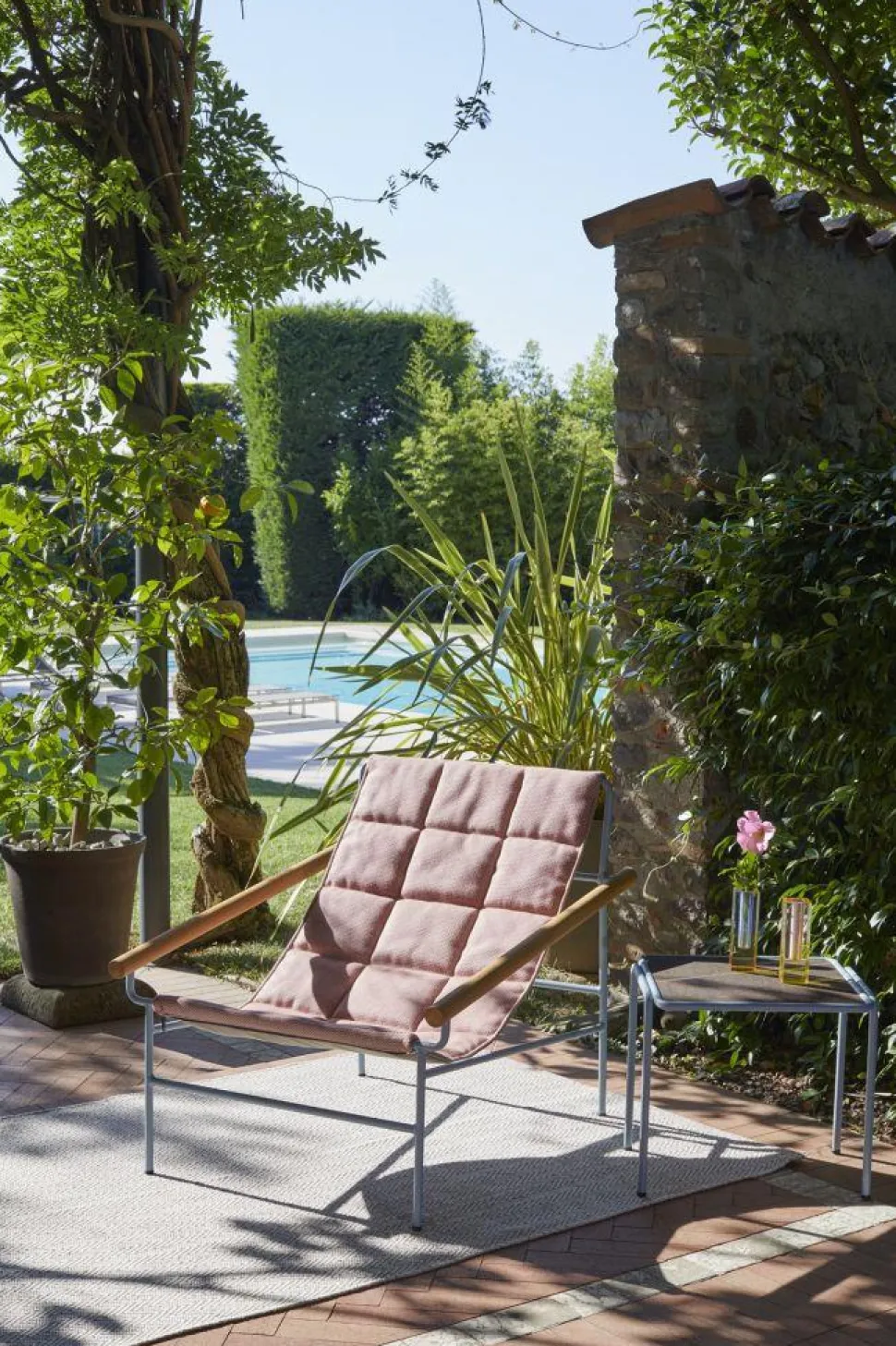 Fotel DRESS_CODE Glam outdoor doogrodu i na tarasinspirowany jest haute couture i bawi się kształtami. Poduszka, która służy również jako zagłówek, jest dostępna w tym samym kolorze co fotel.Co wyróżnia fotel Glam outdoor?Kluczową cechą jest możliwość personalizacji fotela poprzez wybór koloru tapicerki i podstawy fotela.