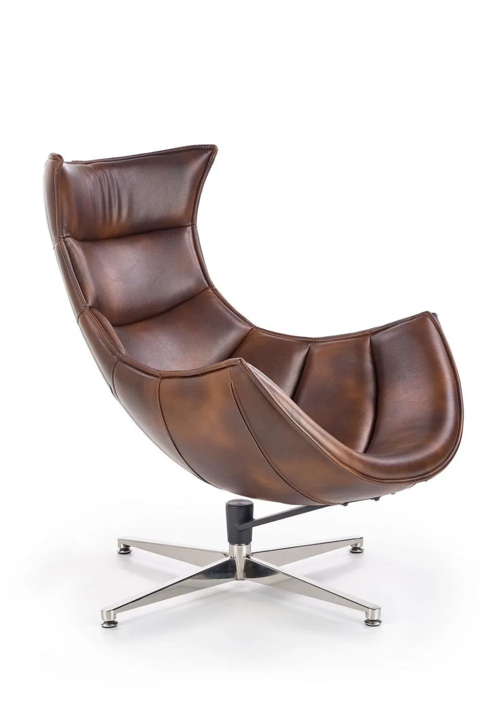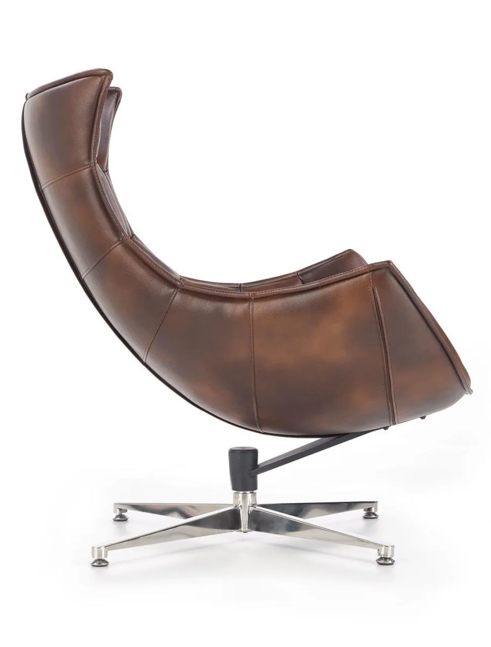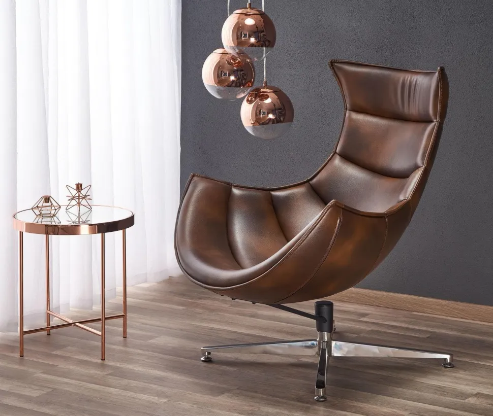 Odważny i nowoczesny fotel Falvio ciemnobrązowy – | Intesi Fotel Falvio od Intesi to odważne rozwiązanie. Wykonany ze skóry kompozytowej i stali nierdzewnej, nowoczesny fotel posiada obrotowe siedzisko i z pewnością będzie przyciągającym wzrok dodatkiem do każdego pomieszczenia. Przedstawiamy fotel Falvio – idealne połączenie klasycznego, nowoczesnego designu i innowacyjnego rzemiosła! Klasyczny fotel ma elegancką ramę ze stali nierdzewnej ze srebrnymi nogami, które tworzą zwiewną sylwetkę. Aby uczynić go jeszcze bardziej zachęcającym, jego poduszka jest tapicerowana trwałą tkaniną ze skóry kompozytowej. Ponadto, dzięki wygodnemu siedzisku o wysokości 36 cm i funkcji obrotowej, z pewnością doświadczysz maksymalnego relaksu za każdym razem, gdy usiądziesz na tym fotelu. Niezależnie od tego, czy przyjmujesz gości, czy przeznaczasz trochę czasu dla siebie, mebel z pewnością zaspokoi wszystkie Twoje potrzeby. Fotel Falvio zapewnia idealną równowagę między stylem i komfortem – kup go już dziś! O tym warto pamiętać! Ponadczasowy, nowoczesny design z srebrną stalową ramą Tapicerowane siedzisko i oparcie z wytrzymałej skóry kompozytowej. Obrotowe siedzisko dla dodatkowego komfortu i wygody. Duże wymiary zapewniające maksymalny komfort dla wszystkich. Łatwy w utrzymaniu czystości.