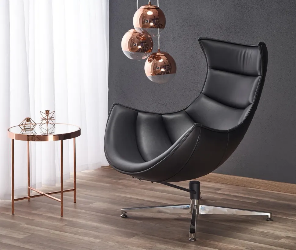 Odważny i nowoczesny fotel Falvio czarny – | Intesi Fotel Falvio od Intesi to odważne rozwiązanie. Wykonany ze skóry kompozytowej i stali nierdzewnej, nowoczesny fotel posiada obrotowe siedzisko i z pewnością będzie przyciągającym wzrok dodatkiem do każdego pomieszczenia. Przedstawiamy fotel Falvio – idealne połączenie klasycznego, nowoczesnego designu i innowacyjnego rzemiosła! Klasyczny fotel ma elegancką ramę ze stali nierdzewnej ze srebrnymi nogami, które tworzą zwiewną sylwetkę. Aby uczynić go jeszcze bardziej zachęcającym, jego poduszka jest tapicerowana trwałą tkaniną ze skóry kompozytowej. Ponadto, dzięki wygodnemu siedzisku o wysokości 36 cm i funkcji obrotowej, z pewnością doświadczysz maksymalnego relaksu za każdym razem, gdy usiądziesz na tym fotelu. Niezależnie od tego, czy przyjmujesz gości, czy przeznaczasz trochę czasu dla siebie, mebel z pewnością zaspokoi wszystkie Twoje potrzeby. Fotel Falvio zapewnia idealną równowagę między stylem i komfortem – kup go już dziś! O tym warto pamiętać! Ponadczasowy, nowoczesny design z srebrną stalową ramą Tapicerowane siedzisko i oparcie z wytrzymałej skóry kompozytowej. Obrotowe siedzisko dla dodatkowego komfortu i wygody. Duże wymiary zapewniające maksymalny komfort dla wszystkich. Łatwy w utrzymaniu czystości.