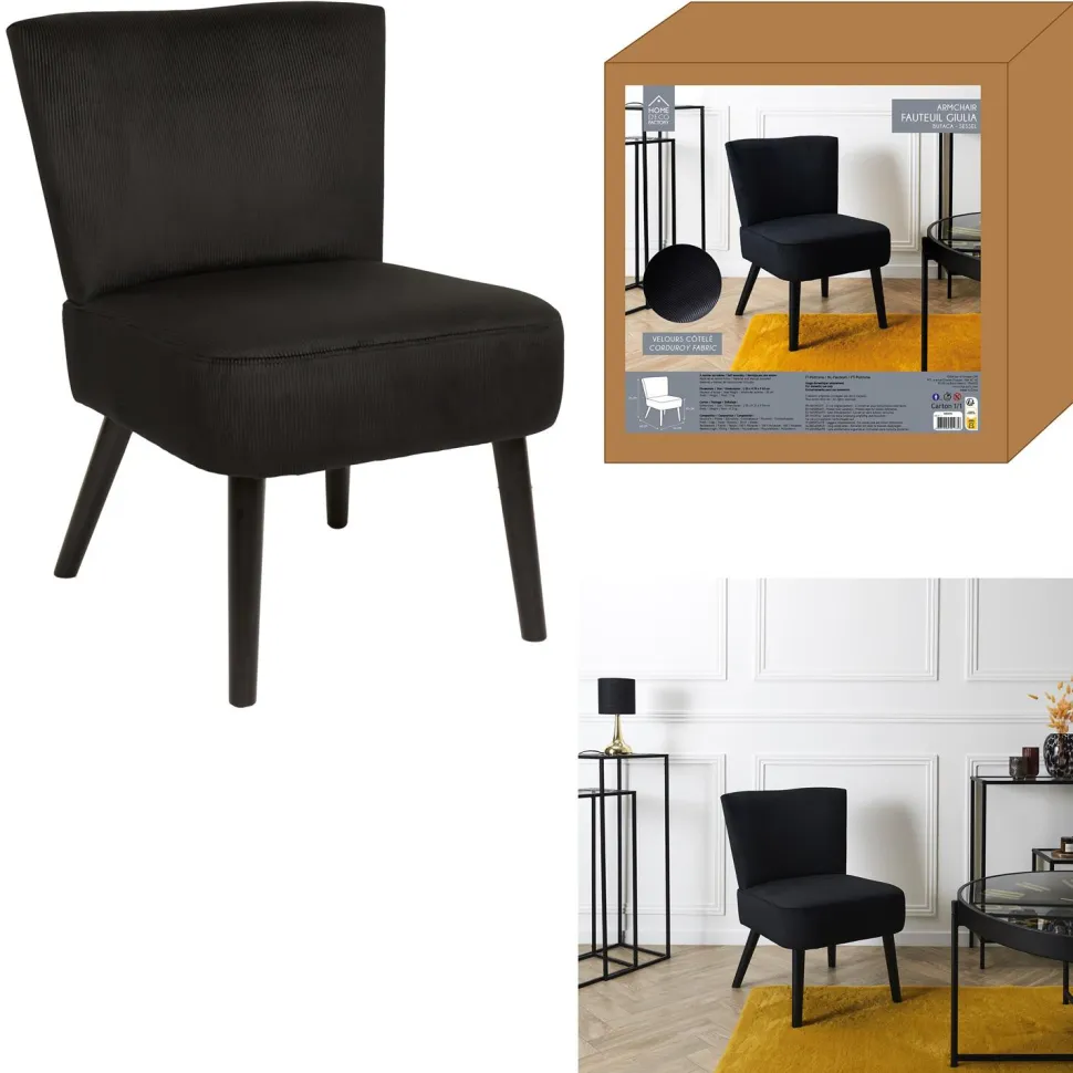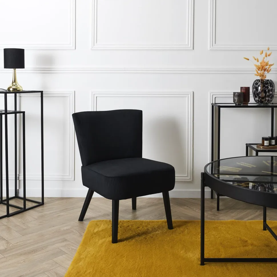 - Nowoczesny design – fotel Giulia to połączenie elegancji i funkcjonalności. Sztruksowa tkanina nadaje mu unikalnego charakteru, a czarne, drewniane nóżki dopełniają całości.