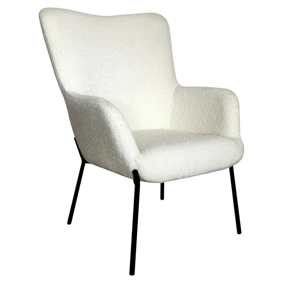 Fotel Glasgow boucle białe to doskonały wybór dla miłośników stylu skandynawskiego, loftowego i nowoczesnego. Dzięki swojej uniwersalnej biało-czarnej kolorystyce, doskonale wpasuje się w każde wnętrze – salon, jadalnię, pokój młodzieżowy czy gabinet. Wysokie nogi mebla umożliwiają wjazd robota sprzątającego, co jest niewątpliwym ułatwieniem w codziennym utrzymaniu porządku.