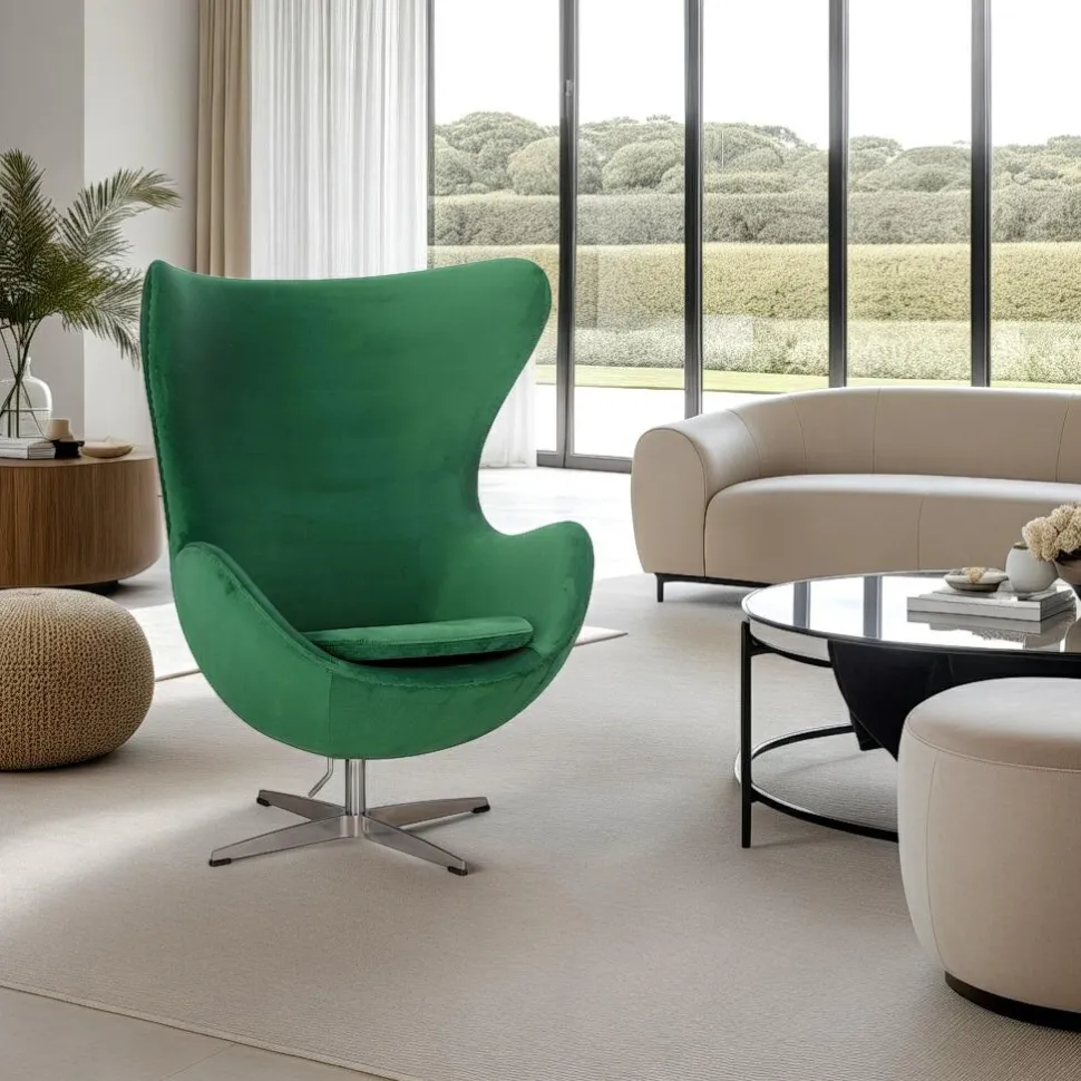Fotel Jajo Velvet zielone/ srebrna podstawa – unikalny design i wygoda