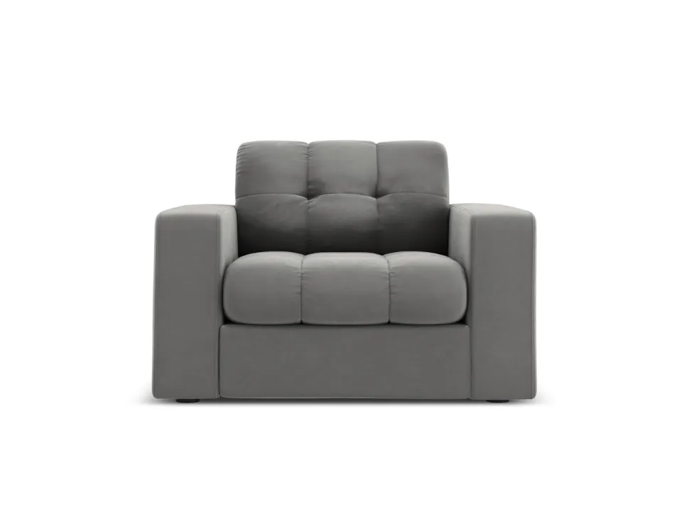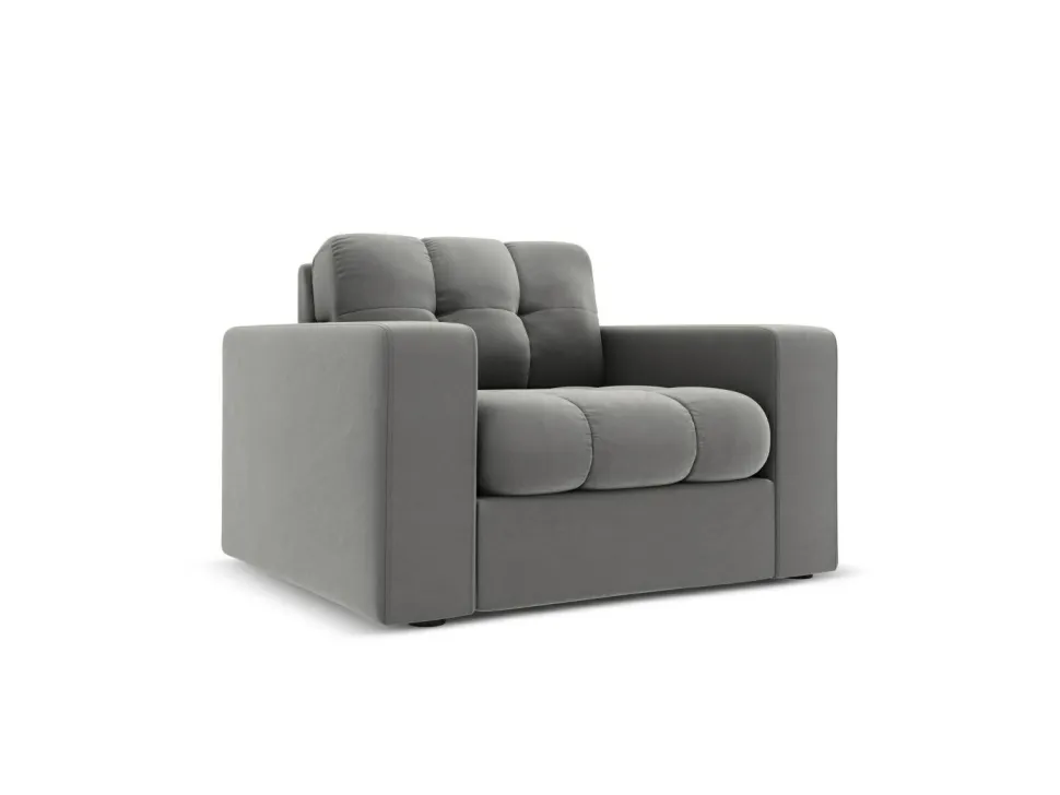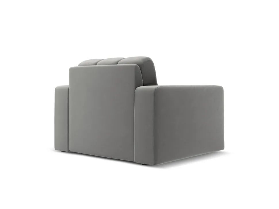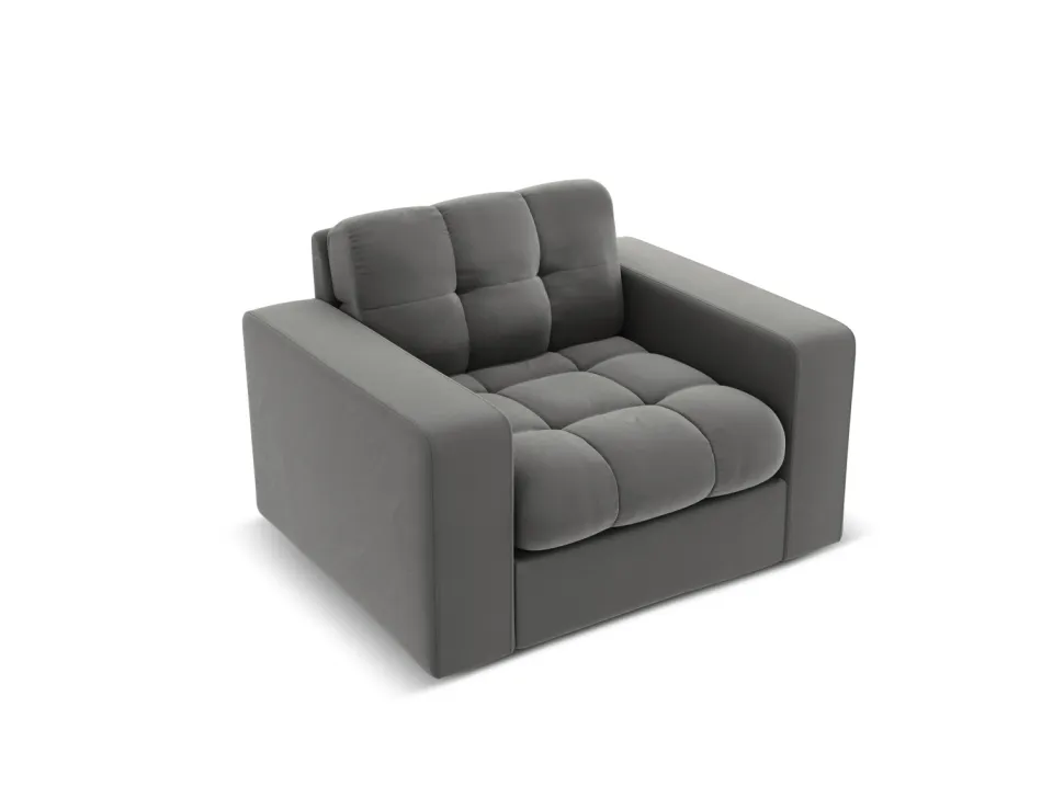 Szary fotel z welwetowym obiciem