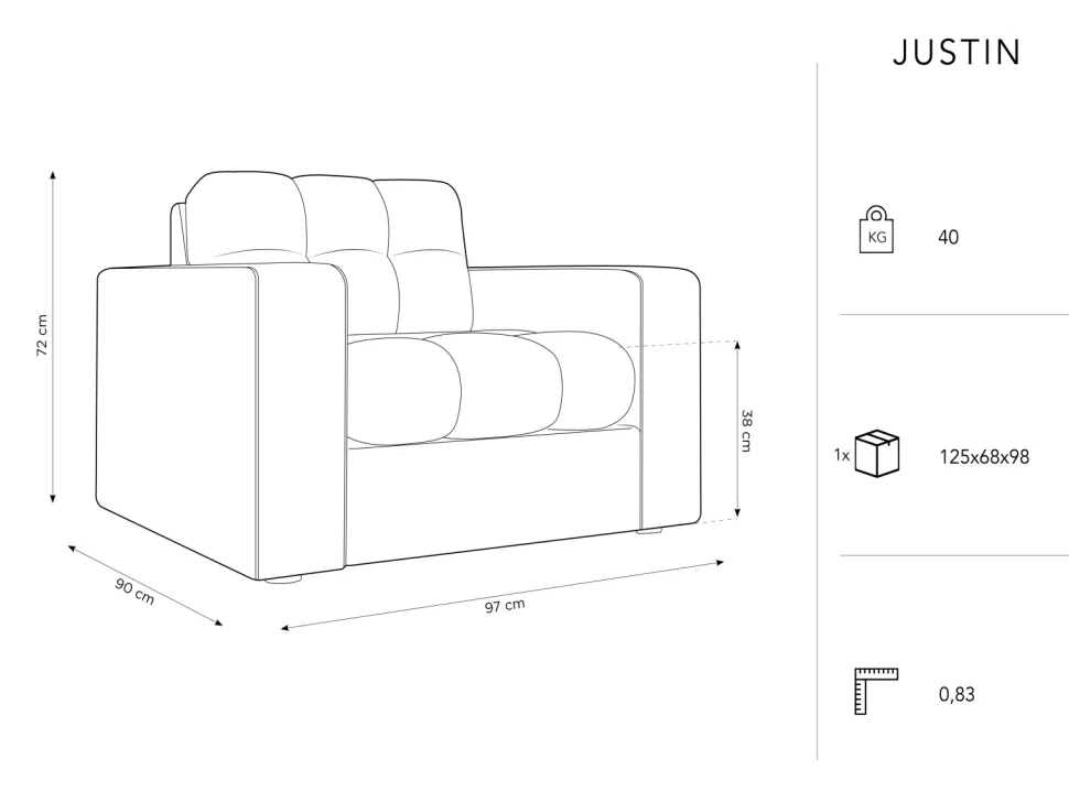 - Fotel Justin Light Grey Velvet to stylowy i komfortowy fotel, który pasuje do każdego wnętrza.