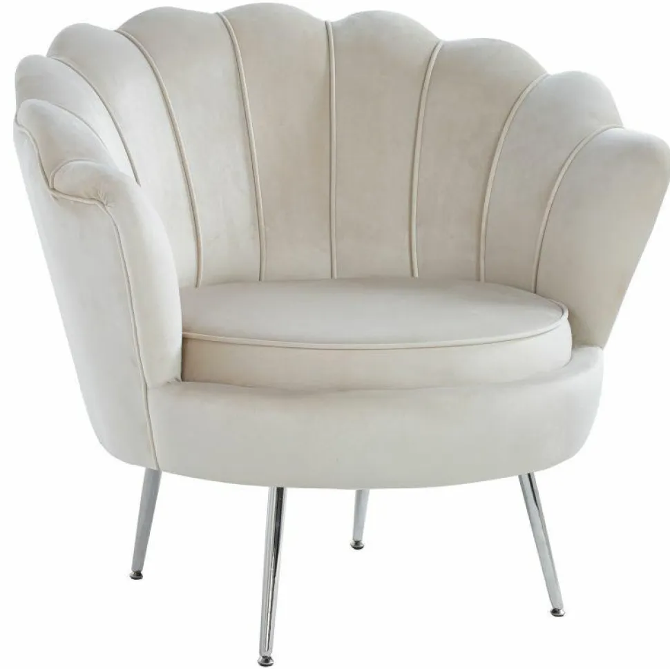 Fotel Korab VIC w kolorze beżowym ze srebrnymi nogami topołączenie elegancji, wygody i stylu glamour,które doskonale sprawdzi się w każdym nowoczesnym wnętrzu. Jegodesignerska forma, inspirowana kształtem muszli,nadaje mu wyjątkowy charakter, który będzie ozdobą zarówno salonu, jak i sypialni.