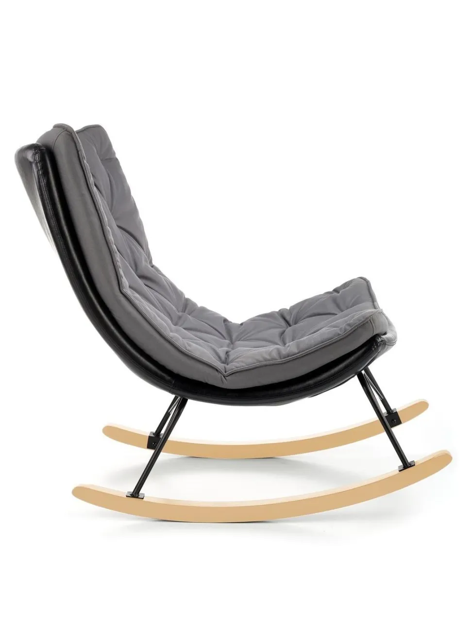Fotel na biegunach Digro to idealne połączenie komfortu, stylu i funkcjonalności. Ten elegancki mebel o wymiarach 72/110/100/42 cm stworzony został z myślą o Twoim doskonałym wypoczynku. Wykonany z wysokiej jakości materiałów, takich jak tkanina, eco skóra, stal malowana proszkowo oraz drewno lite, ten fotel gwarantuje nie tylko trwałość, ale także wyjątkowy wygląd. Jego kolor w ciemnym odcieniu doskonale pasuje do każdego wnętrza, dodając mu elegancji i klasy. Jedną z największych korzyści tego fotela jest jego wyjątkowy mechanizm na biegunach. Dzięki niemu możesz przenieść się w świat relaksu i odprężenia.