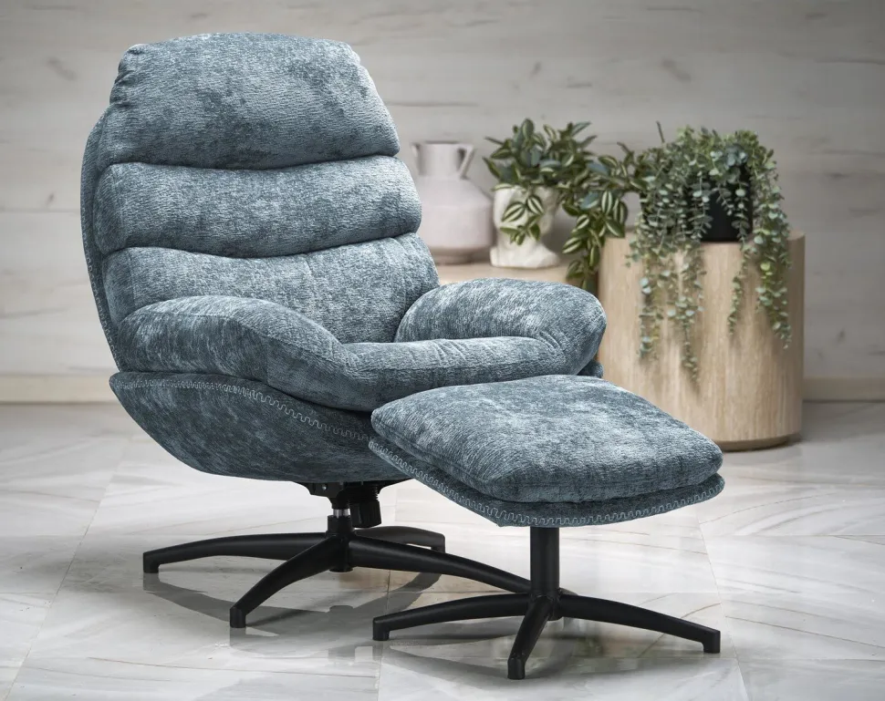 Fotel wypoczynkowy Beltine z podnóżkiem w kolorze niebieskim!