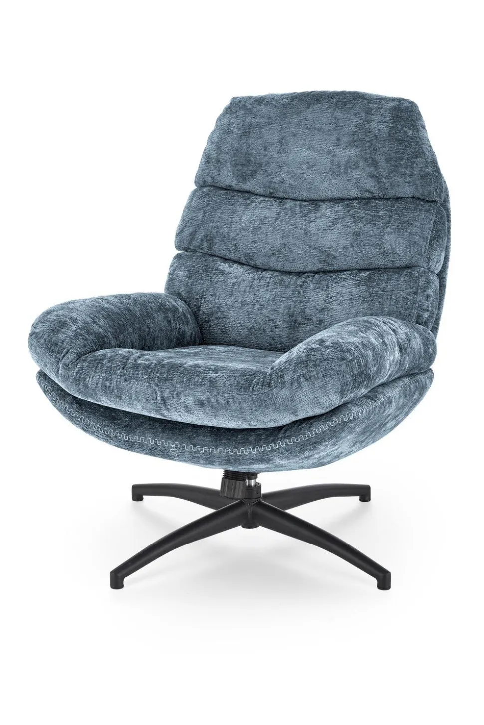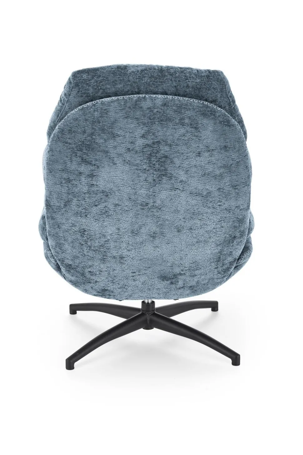 Fotel Beltine charakteryzuje się nowoczesnym i rustykalnym designem. Jego niebieska tkanina doskonale wpasuje się w każde wnętrze, nadając mu unikalnego charakteru. Czarna stalowa podstawa stanowi doskonałe uzupełnienie dla niebieskiego siedziska, tworząc spójną i estetyczną całość.