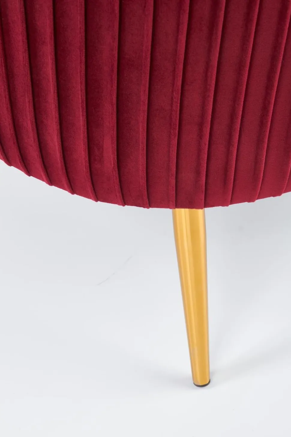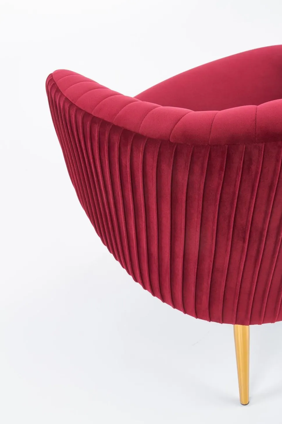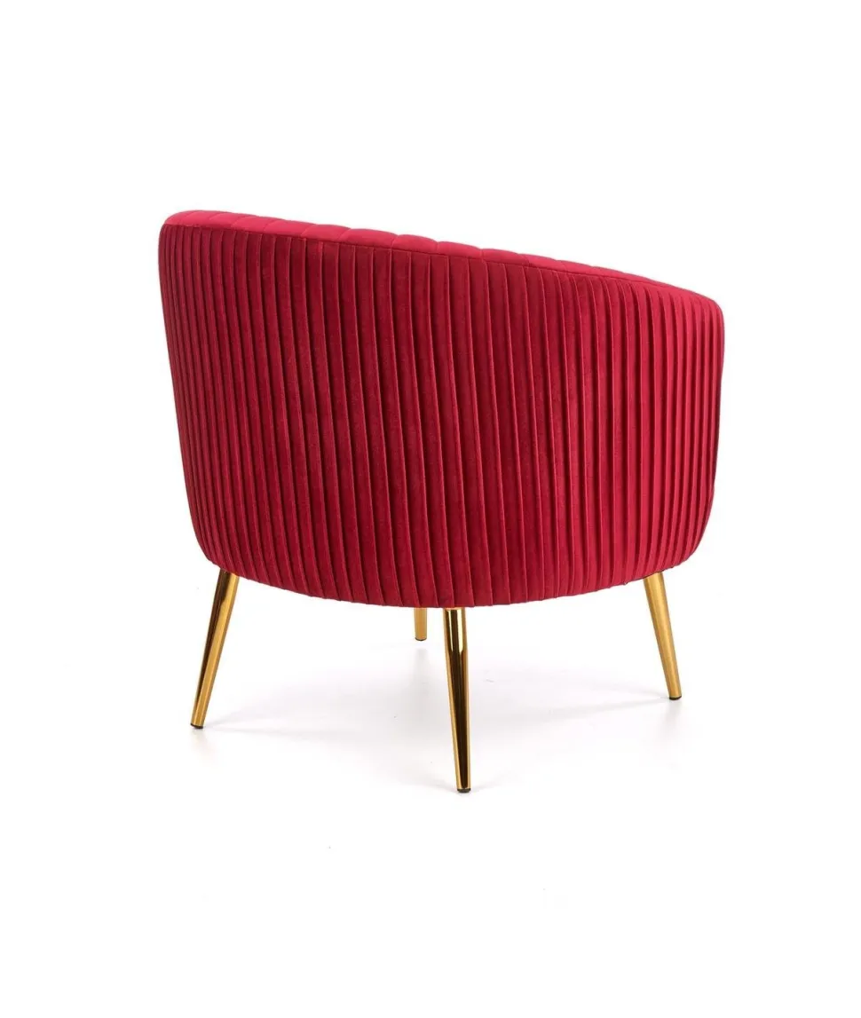 Przygotuj się na stylowy wypoczynek – FotelDargo | Intesi Podnieś swoją grę relaksacyjną na wyższy poziom dzięki fotelowi wypoczynkowemuDargo od Intesi. Wygodny fotel z aksamitnej tkaniny jest usadzony na podstawie z malowanego metalui jest dostępny w połączeniu eleganckich kolorów, które nadają mu ultranowoczesny wygląd. Przedstawiamy luksusowy fotel wypoczynkowyDargo – idealny na wieczór pełen stylu i komfortu. Ponadczasowy fotel został zaprojektowany z eleganckim kunsztem, szczycąc się wysokością80 cm i szerokością 78 cm. Piękna stalowa podstawa malowananazłototworzy mocny akcent, a eleganckie siedzisko z welwetowej tkaniny w kolorze bordowymdodaje dodatkowego blasku. Głębokość72 cm zapewnia dużo miejsca do siedzenia, a wysokość siedziska 45 cm zapewnia idealny poziom relaksu. Dzięki nowoczesnej estetyce i doskonałemu komfortowi, fotel ten będzie ozdobą każdego pomieszczenia. Przytul się do fotela wypoczynkowegoDargo i spędź niezapomniany wieczór! O tym warto pamiętać! Wyraziste linie i nowoczesny design podniosą rangę każdej przestrzeni życiowej Luksusowo wygodne siedzisko z aksamitną poduszką z tkaniny Wytrzymała metalowa podstawa zapewnia trwałość i stabilność Ponadczasowy design będzie stylowym akcentem w każdym domu