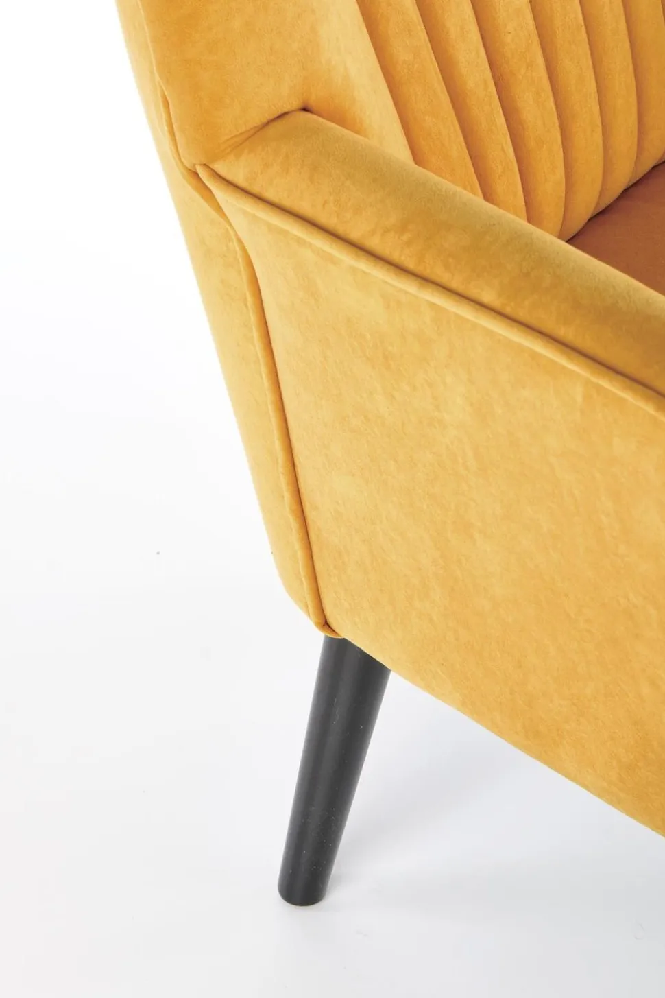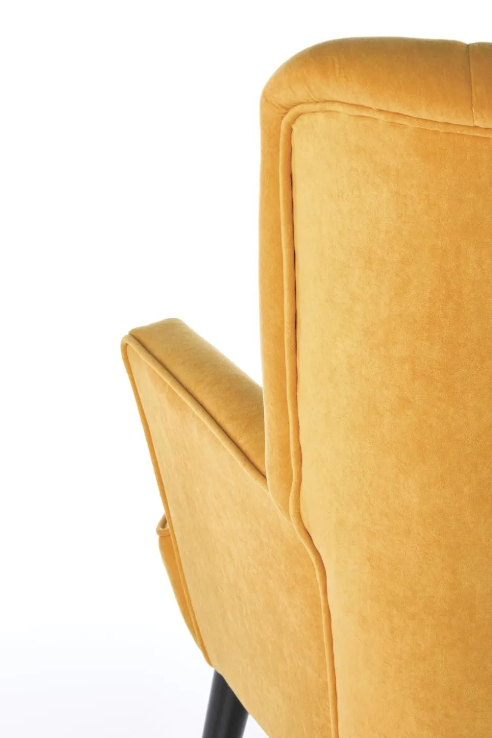 Komfort łączy się ze stylem dzięki miodowemu fotelowi Darli firmy Intesi Zrelaksuj się w stylu i komforcie z fotelem Darli firmy Intesi. Fotel o klasycznym, nowoczesnym designie, wykonany z drewna i tapicerowany aksamitną tkaniną welwetową, jest idealnym akcentem do każdego pomieszczenia. Przedstawiamy Darli, najlepsze połączenie klasycznego i nowoczesnego designu w jednym fotelu! Luksusowy mebel opiera się na czarnych, drewnianych nogach, a jego miękka aksamitna tkanina sprawi, że nigdy nie będziesz chciał z niego zejść. Niezależnie od tego, czy szukasz wyjątkowego dodatku do swojego salonu, czy wygodnego miejsca do relaksu w biurze, Darli z pewnością będzie idealnie pasować. Dzięki wysokości 100 centymetrów i wysokości siedziska wynoszącej 42 cm, dodaje eleganckiego akcentu, którego nie da się zignorować. Wymiary 70x75x100 zapewniają wystarczające wsparcie i komfort na każdą okazję. Dodatkowo, ten fotel jest zaskakująco lekki, więc zmiana aranżacji pokoju właśnie stała się łatwiejsza! Wybierz Darli i wprowadź ponadczasowy styl do swojego domu już dziś. O tym warto pamiętać! Ciesz się maksymalnym komfortem dzięki luksusowej aksamitnej tapicerce i ergonomicznej konstrukcji Wzbogać wystrój swojego pokoju dzięki eleganckim, nowoczesnym liniom i klasycznej drewnianej ramie Umieść w dowolnym miejscu w pokoju dzięki lekkiej konstrukcji i kompaktowym rozmiarom Ciesz się trwałością dzięki solidnej konstrukcji i wysokiej jakości materiałom