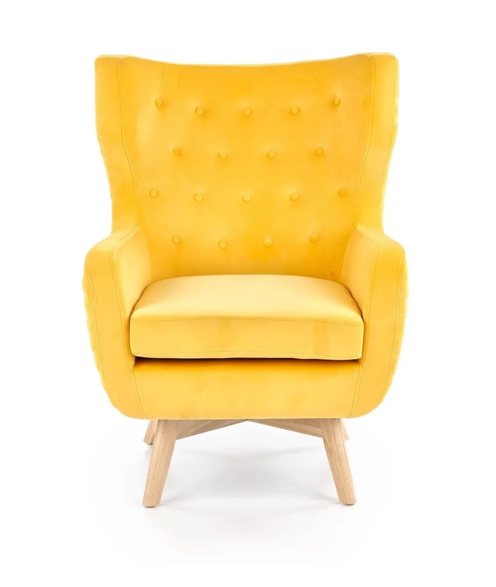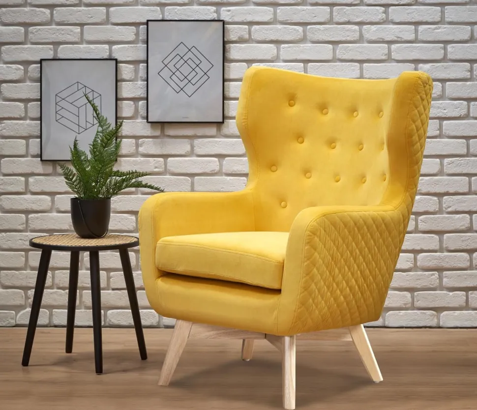 Komfort łączy się ze stylem dzięki żółtemu fotelowiFarys firmy Intesi Zrelaksuj się w stylu i komforcie z fotelem Farysfirmy Intesi. Fotel o klasycznym, nowoczesnym designie, wykonany z litego drewna i tapicerowany aksamitną tkaniną welwetową, jest idealnym akcentem do każdego pomieszczenia. Przedstawiamy fotel Farys, najlepsze połączenie klasycznego i nowoczesnego designu w jednym fotelu! Luksusowy mebel opiera się na naturalnych, drewnianych nogach, a jego miękka aksamitna tkanina sprawi, że nigdy nie będziesz chciał z niego zejść. Niezależnie od tego, czy szukasz wyjątkowego dodatku do swojego salonu, czy wygodnego miejsca do relaksu w biurze,Farys z pewnością będzie idealnie pasować. Dzięki wysokości 103 centymetrów i wysokości siedziska wynoszącej50 cm, dodaje eleganckiego akcentu, którego nie da się zignorować. Wymiary 75x83x103zapewniają wystarczające wsparcie i komfort na każdą okazję. Dodatkowo, ten fotel jest zaskakująco lekki, więc zmiana aranżacji pokoju właśnie stała się łatwiejsza! Wybierzfotel Farys i wprowadź ponadczasowy styl do swojego domu już dziś. O tym warto pamiętać! Ciesz się maksymalnym komfortem dzięki luksusowej aksamitnej tapicerce i ergonomicznej konstrukcji Wzbogać wystrój swojego pokoju dzięki eleganckim, nowoczesnym liniom i klasycznej drewnianej ramie Umieść w dowolnym miejscu w pokoju dzięki lekkiej konstrukcji i kompaktowym rozmiarom Ciesz się trwałością dzięki solidnej konstrukcji i wysokiej jakości materiałom