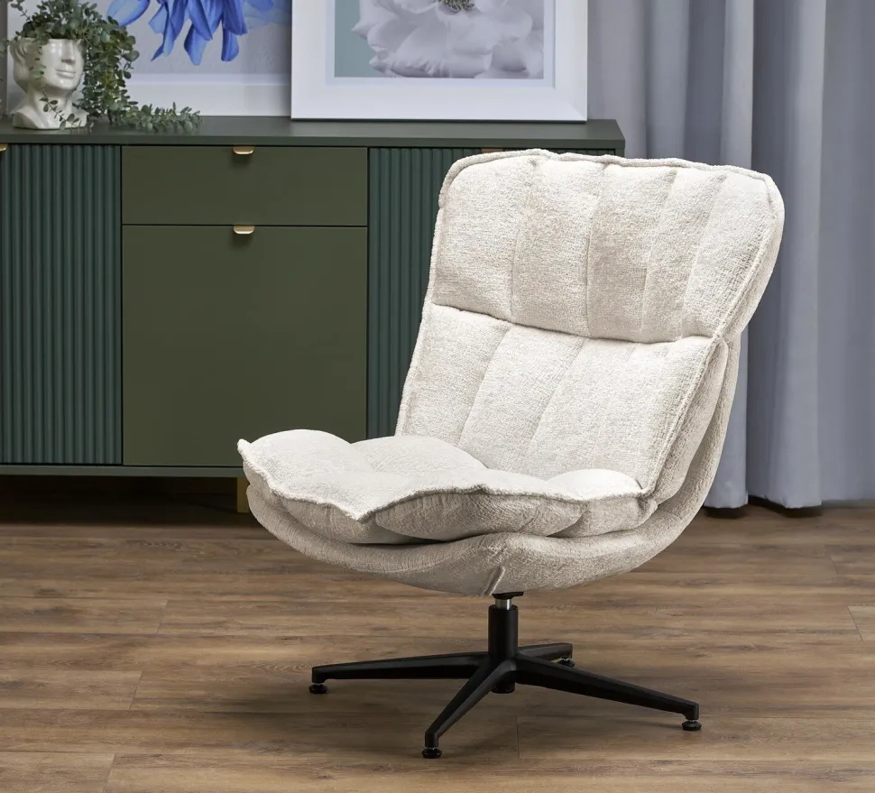Fotel kremowy z czarną podstawą – uniwersalność i estetyka
