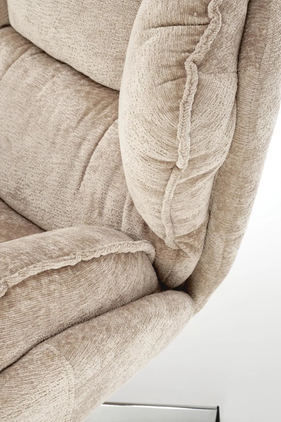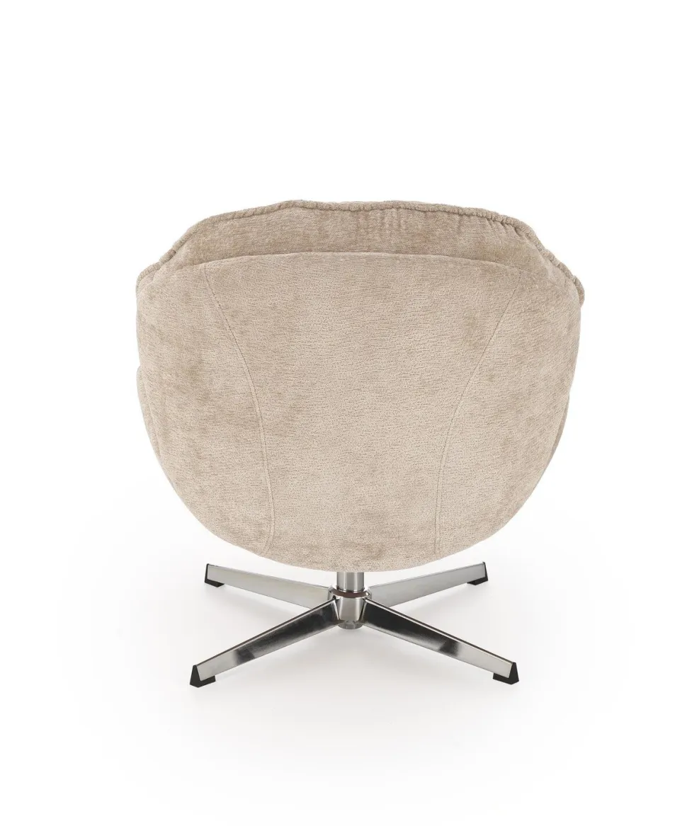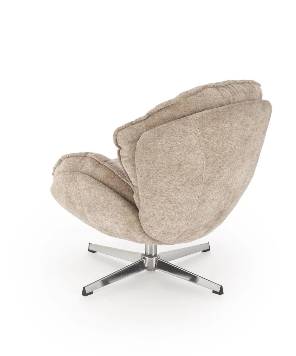 - Beżowy odcień tkaniny jest uniwersalny, co ułatwia dopasowanie fotela do różnych kolorów i stylów wnętrz, wprowadzając ciepło i przytulność do pomieszczenia