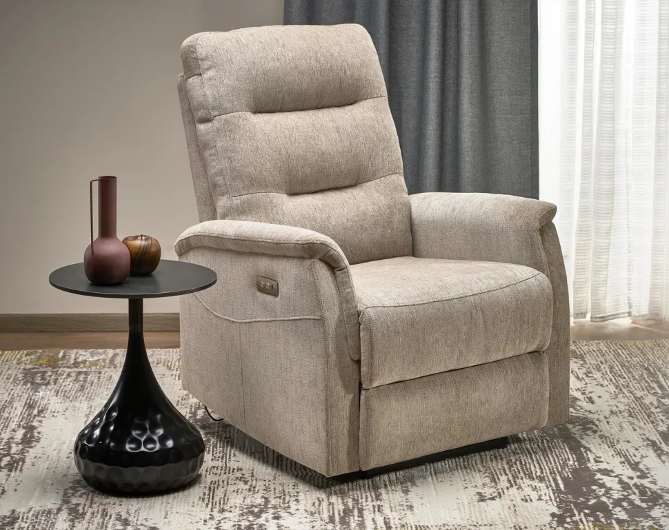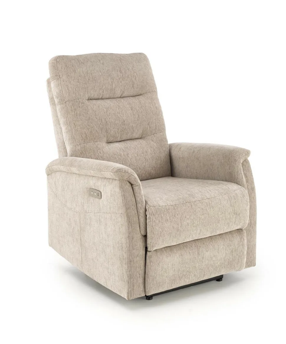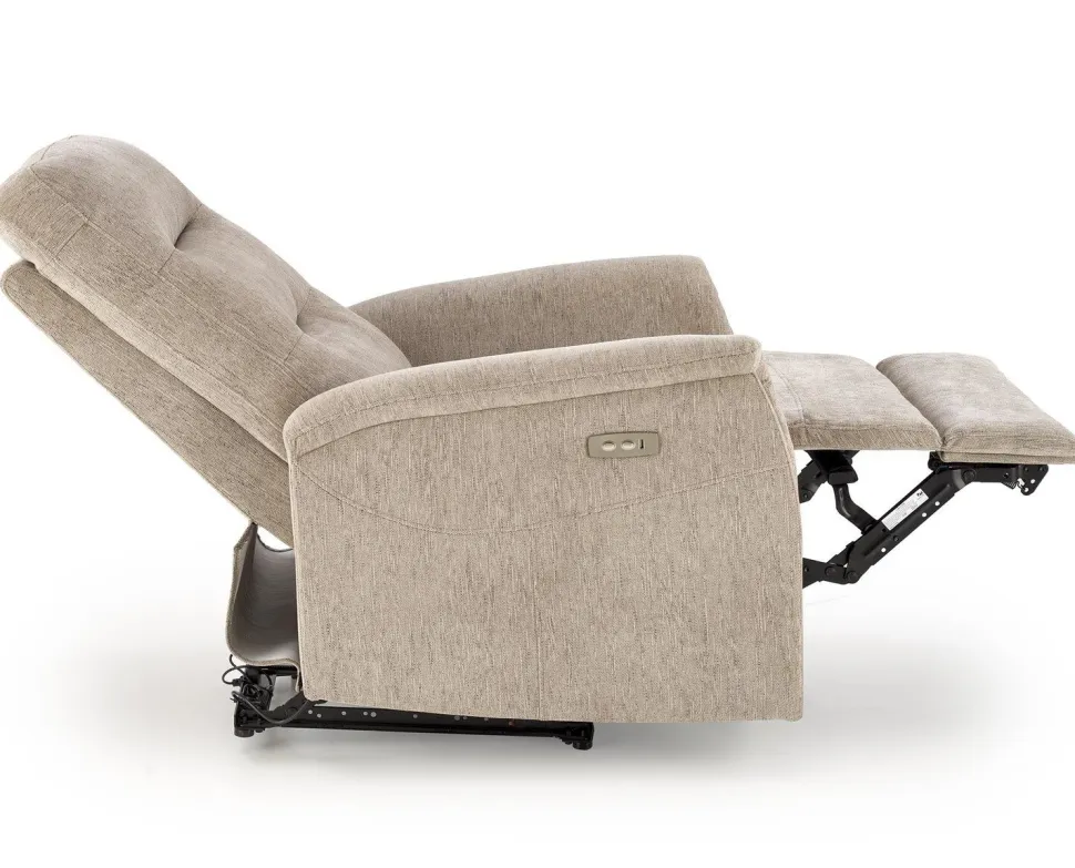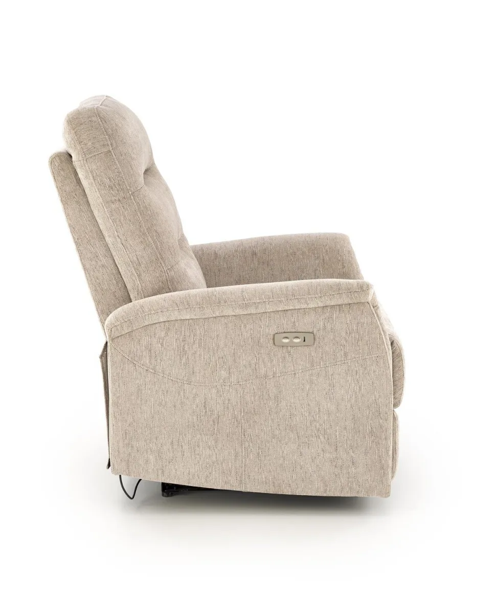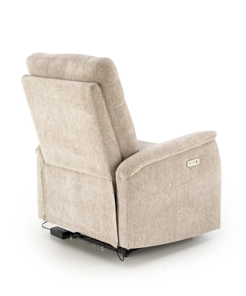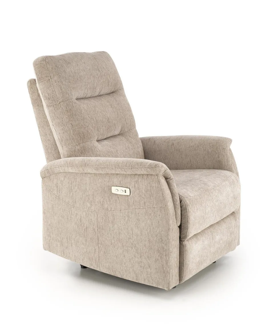 Fotel Tiala wyróżnia się funkcją elektrycznego rozkładania, która umożliwia łatwe dostosowanie pozycji siedziska do indywidualnych potrzeb. Dzięki temu użytkownik może w prosty sposób przejść z pozycji siedzącej do leżącej, co znacząco zwiększa komfort użytkowania. Dodatkowo, wbudowane gniazdo USB jest praktycznym rozwiązaniem, które umożliwia ładowanie urządzeń elektronicznych, takich jak smartfony czy tablety, bez potrzeby wstawania z fotela.