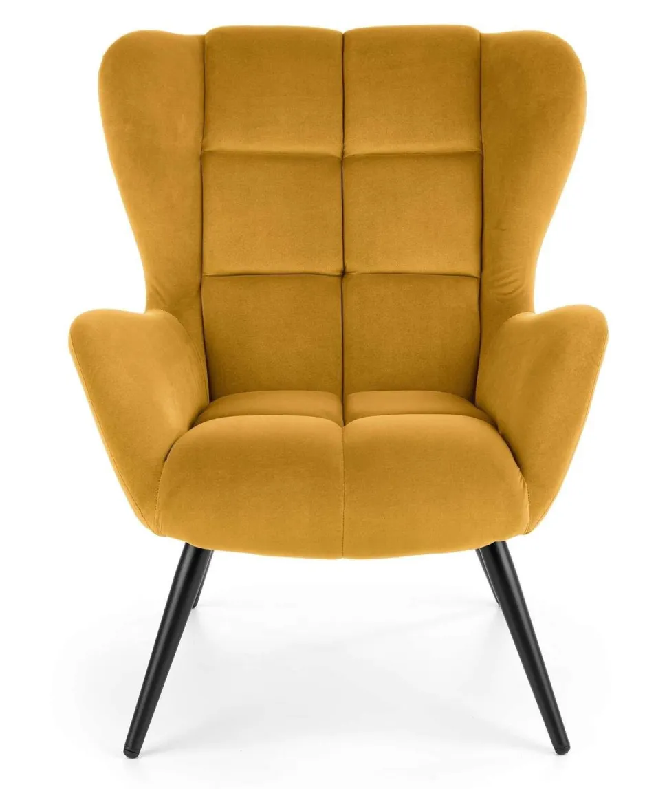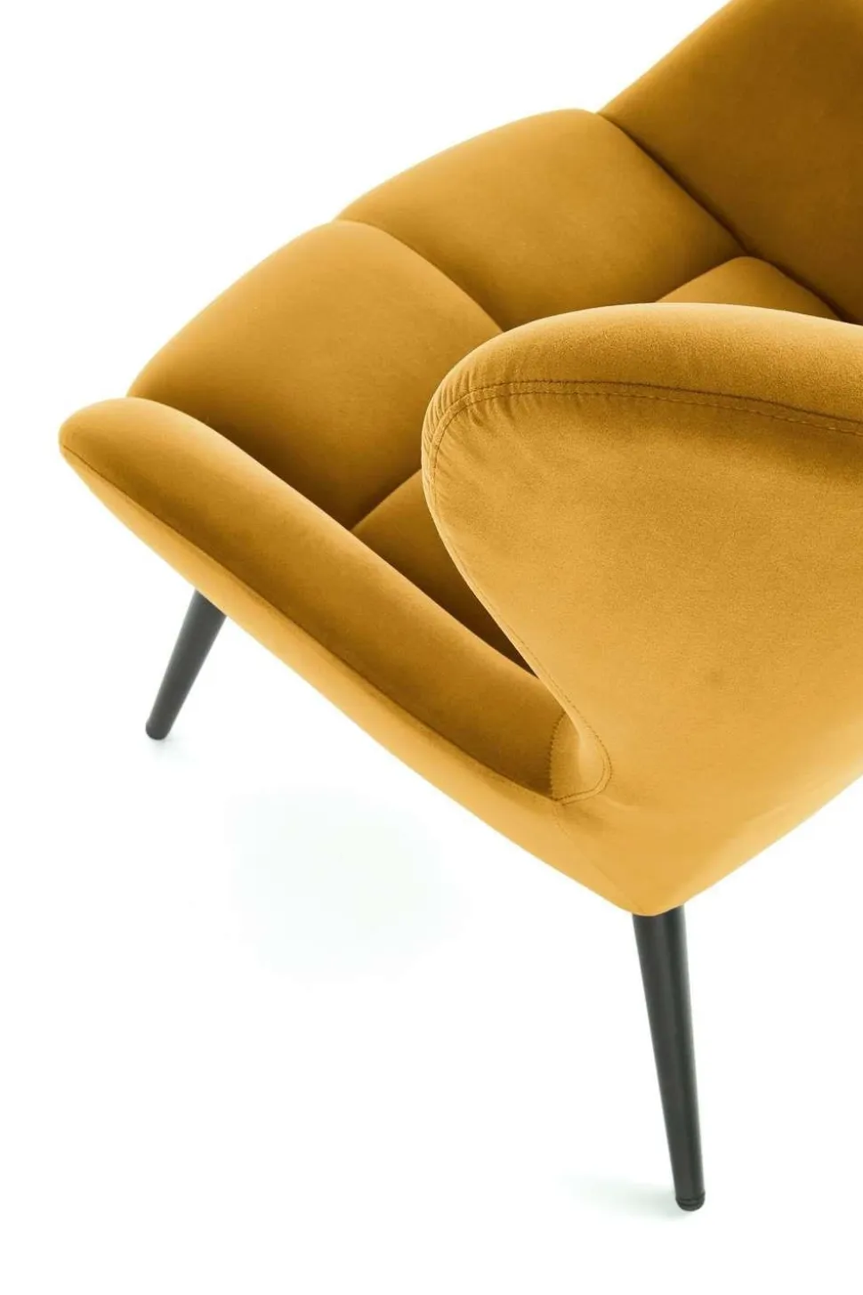 Przygotuj się na stylowy wypoczynek – Fotel Vadis żółty | Intesi Podnieś swoją grę relaksacyjną na wyższy poziom dzięki fotelowi wypoczynkowemu Vadis od Intesi. Wygodny fotel z aksamitnej tkaniny jest usadzony na podstawie z malowanej proszkowo stali i jest dostępny w połączeniu eleganckich kolorów, które nadają mu ultranowoczesny wygląd. Przedstawiamy luksusowy fotel wypoczynkowy Vadis – idealny na wieczór pełen stylu i komfortu. Ponadczasowy fotel został zaprojektowany z eleganckim kunsztem, szczycąc się wysokością 91 cm i szerokością 75 cm. Piękna stalowa podstawa malowana proszkowo na czarno tworzy mocny akcent, a eleganckie siedzisko z welwetowej tkaniny w kolorze miodowymdodaje dodatkowego blasku. Głębokość 86 cm zapewnia dużo miejsca do siedzenia, a wysokość siedziska 45 cm zapewnia idealny poziom relaksu. Dzięki nowoczesnej estetyce i doskonałemu komfortowi, fotel ten będzie ozdobą każdego pomieszczenia. Przytul się do fotela wypoczynkowego Vadis i spędź niezapomniany wieczór! O tym warto pamiętać! Wyraziste linie i nowoczesny design podniosą rangę każdej przestrzeni życiowej Luksusowo wygodne siedzisko z aksamitną poduszką z tkaniny Wytrzymała stalowa podstawa malowana proszkowo zapewnia trwałość i stabilność Ponadczasowy design będzie stylowym akcentem w każdym domu