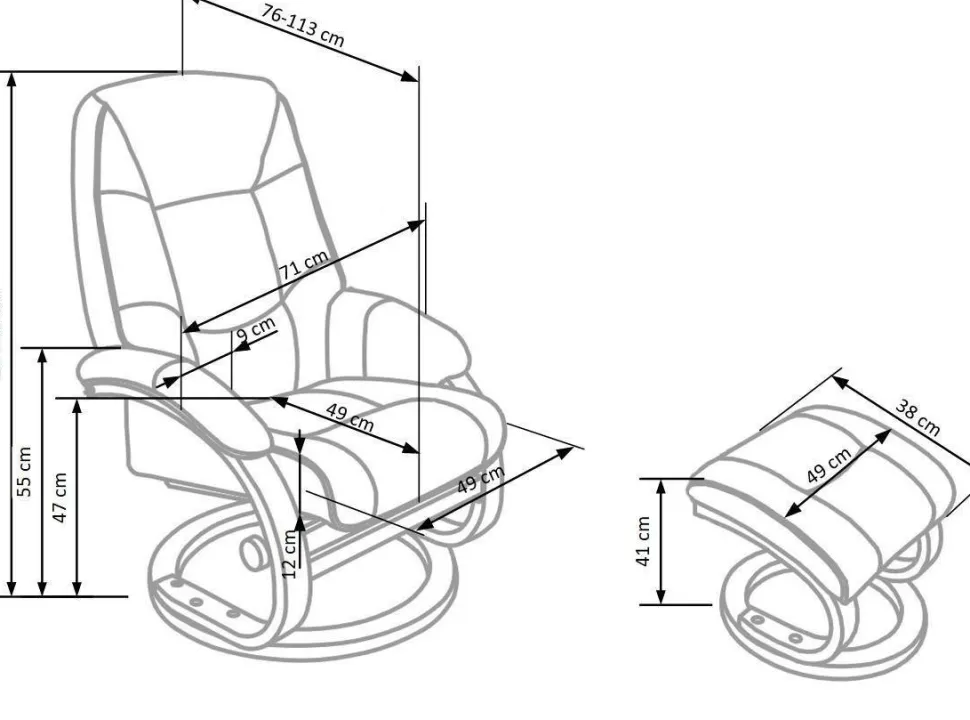 Materiał obiciowy to ekoskóra, która jest nie tylko przyjemna w dotyku, ale również łatwa w czyszczeniu i odporna na uszkodzenia. Kolor czarny dodaje fotelowi elegancji i pasuje do każdego wnętrza. Jednak największą zaletą tego fotela jest jego funkcjonalność. Dzięki możliwości rozkładania, możesz go swobodnie dostosować do swoich potrzeb. Dodatkowo, funkcja masażu i podgrzewania sprawia, że każdy moment spędzony na tym fotelu staje się niezwykle relaksujący i kojący dla ciała i umysłu. Masaż pomaga złagodzić napięcie mięśniowe, redukuje ból i stres, a podgrzewanie doskonale rozluźnia i rozgrzewa ciało.