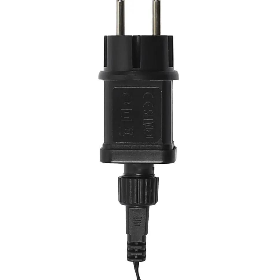 Girlanda jest wyposażona w gniazdo zasilania, co umożliwia jej łatwe podłączenie do sieci elektrycznej. Typ żarówki LED gwarantuje energooszczędność oraz długą żywotność, co czyni ją nie tylko piękną, ale i ekonomiczną opcją oświetlenia. Materiał, z którego wykonane są żarówki, to trwały plastik, co zapewnia ich odporność na uszkodzenia oraz wpływy atmosferyczne. Girlanda została zaprojektowana z myślą o użytku zewnętrznym, co oznacza, że jest odporna na wilgoć, deszcz i inne warunki pogodowe, dzięki czemu może być bezpiecznie używana na zewnątrz przez cały rok.