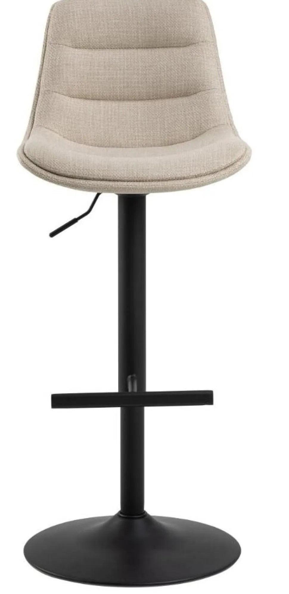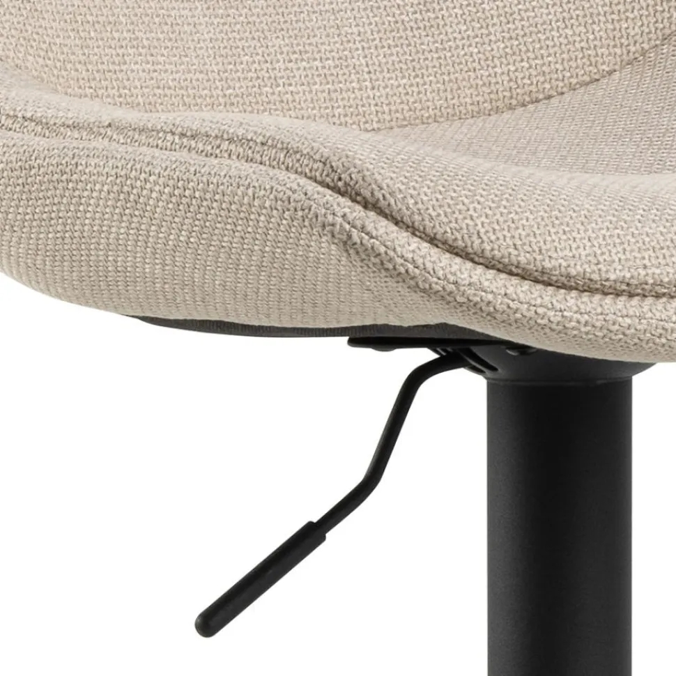 Hoker Adisa w kolorze beżowym z tkaniną Basel 24 to elegancki i nowoczesny dodatek do wnętrza, idealny do stosowania w kuchni, jadalni, czy nawet w stylowym barze. Konstrukcja jednej czarnej nogi z podstawą zapewnia stabilność i wygodę użytkowania. Metalowy podnóżek dodatkowo ułatwia komfortowe siedzenie, umożliwiając podpieranie stóp.
