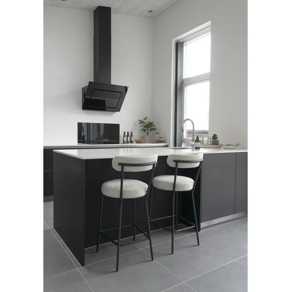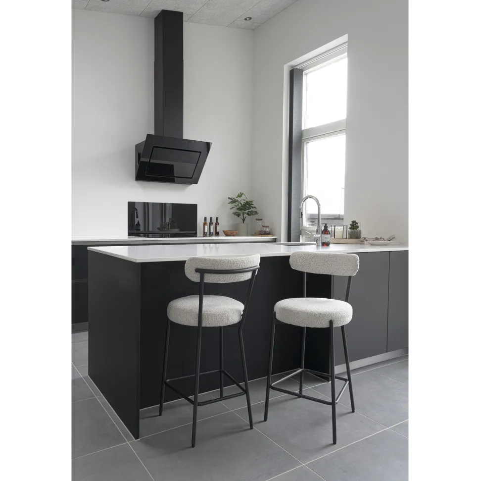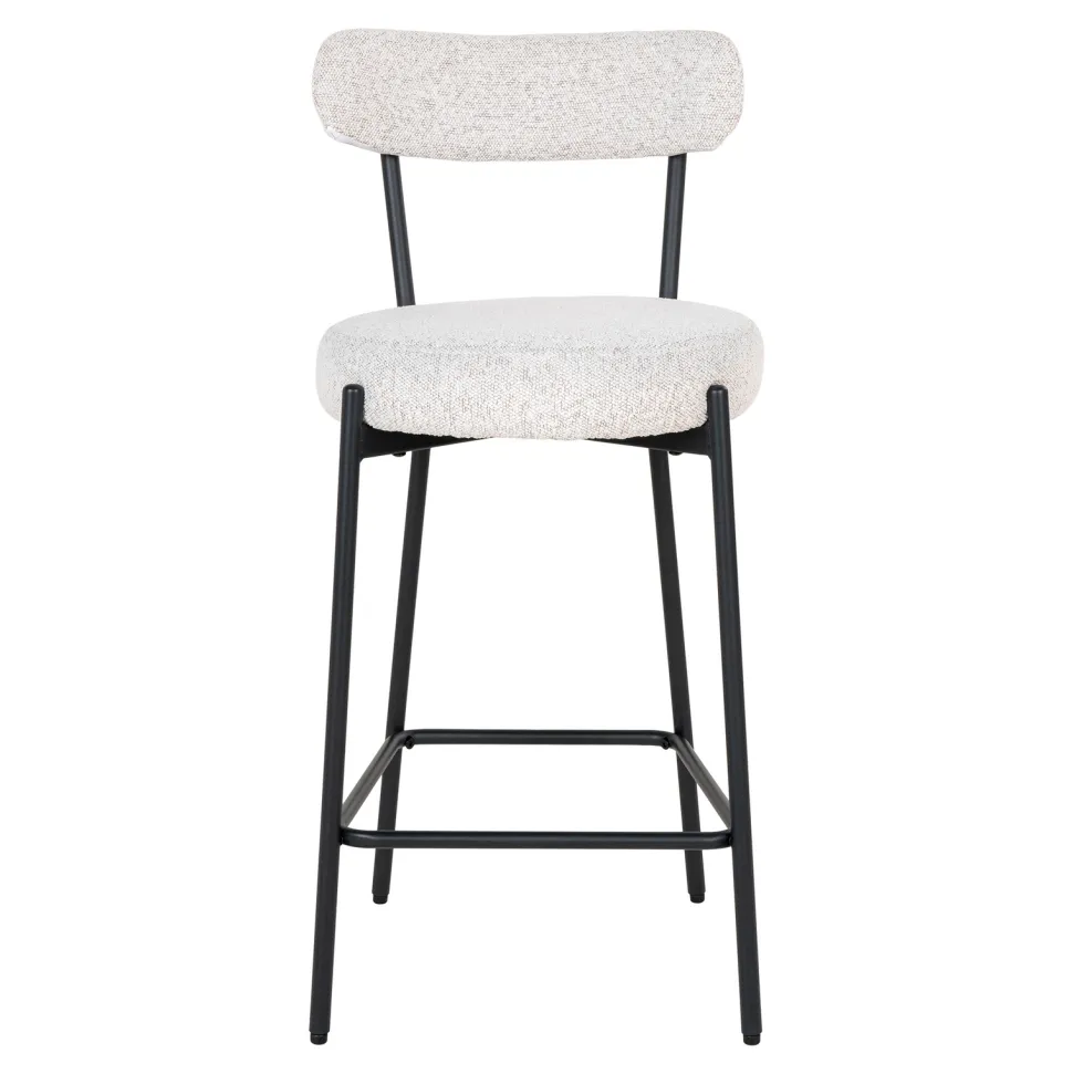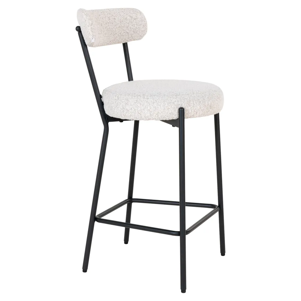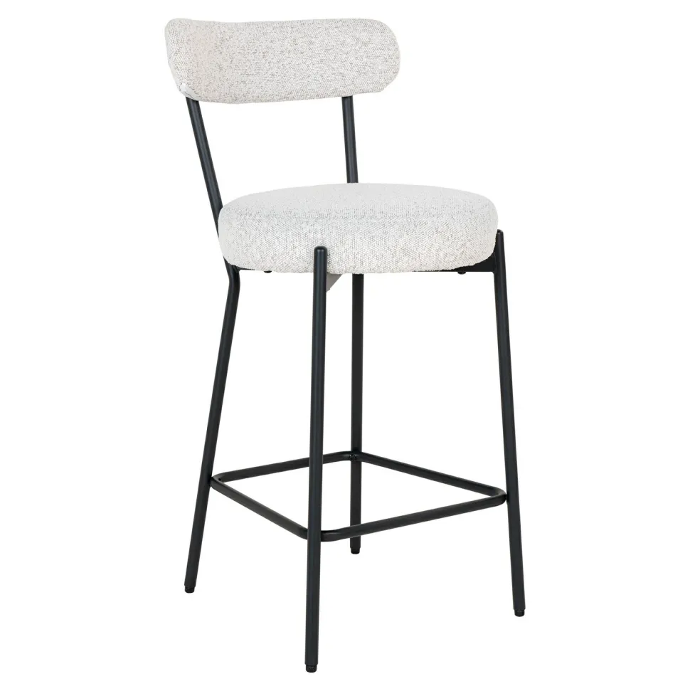 Podkreśl swoją miłość do nowoczesnego designu, wybierając hoker Badalona boucle. Wykonany z połączenia stali, poliestru i sklejki, ten mebel zachwyca swoją estetyką i funkcjonalnością. Jego tapicerka w stylu boucle, wykonana w 100% z poliestru, łączy w sobie przytulność i modny wygląd. Czarne metalowe nogi dodają mu elegancji, a wysokość siedziska wynosząca 65 cm sprawia, że jest idealny do barów, kuchni czy jadalni. Dzięki swojej uniwersalnej kolorystyce – białej tapicerki i czarnych nóg – hoker ten doskonale wpasuje się w różne style aranżacji.