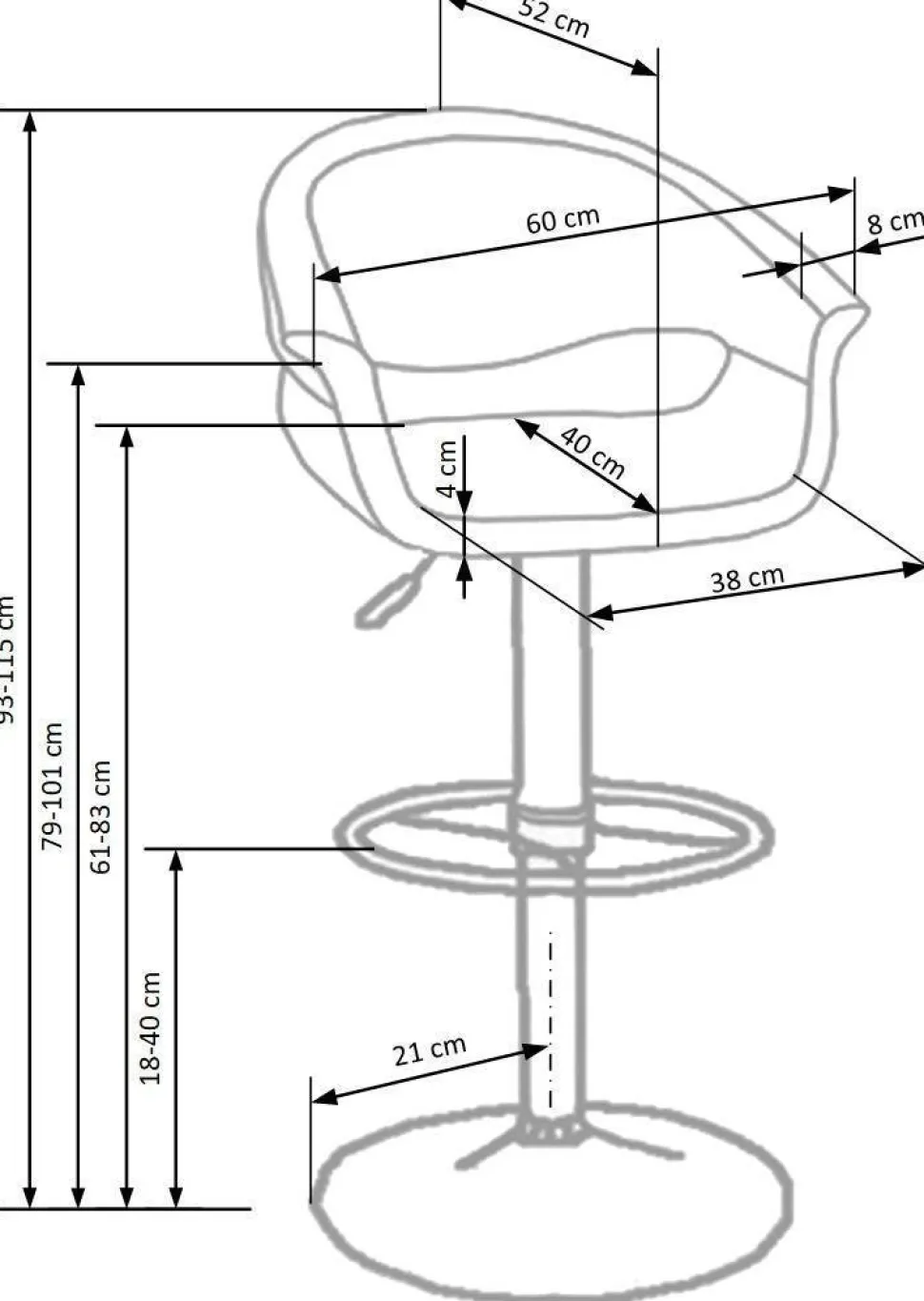 Hoker tapicerowanyCognac | Intesi HokerCognac od Intesi to połączenie komfortu i stylu! Tapicerowany hoker obraca się i umożliwia regulację wysokości, dzięki czemu jest idealnym dodatkiem do każdego biura lub przestrzeni mieszkalnej. Wykonany z ekoskóry i stali chromowanej, które są zapewnieniem trwałości. Przedstawiamy hokerCognac – idealną równowagę stylu i komfortu. Wyrafinowany, nowoczesny design jest wyposażony w funkcję obracania i regulację wysokości, co zapewnia mu wyjątkowy poziom wszechstronności. Jego wygodna konstrukcja zapewnia poczucie wsparcia przy jednoczesnym zachowaniu atrakcyjnego wyglądu. HokerCognac został wykonany z ekoskóry i stali chromowanej, dzięki czemu jest zarówno wytrzymały, jak i piękny.Czarno-białe wykończenie dodaje mu klasycznego charakteru, dzięki czemu jest idealnym dodatkiem do każdego pomieszczenia, wtapiając się zarówno w nowoczesne, jak i współczesne aranżacje. Szerokość60 cm, głębokość 46 cm i regulowana wysokość 93-115 cm sprawiają, żestołek będzie idealnie pasować do każdego wnętrza. Jego tapicerowane siedzisko można regulować w zakresie 61-83 cm, dzięki czemu jest wygodny dla osób o dowolnym wzroście. HokerCognac z pewnością wniesie odrobinę luksusu i elegancji do każdej przestrzeni. Jego nowoczesny styl i wygodne funkcje sprawiają, że jest to idealne połączenie na długie relaksujące wieczory po ciężkim dniu pracy. Pomoże ci podnieść wystrój i zapewni niezrównany komfort przez wiele lat. O tym warto pamiętać! Regulowana wysokość siedziska, pozwalająca na ergonomiczne dopasowanie i wygodę Ekologiczne materiały zmniejszające negatywny wpływ na środowisko Przestronna konstrukcja z kompaktowymi wymiarami pozwala na umieszczenie go w dowolnym miejscu Trwała i wytrzymała konstrukcja zapewniająca maksymalną stabilność Obrotowa podstawa zapewnia większą mobilność i wszechstronność