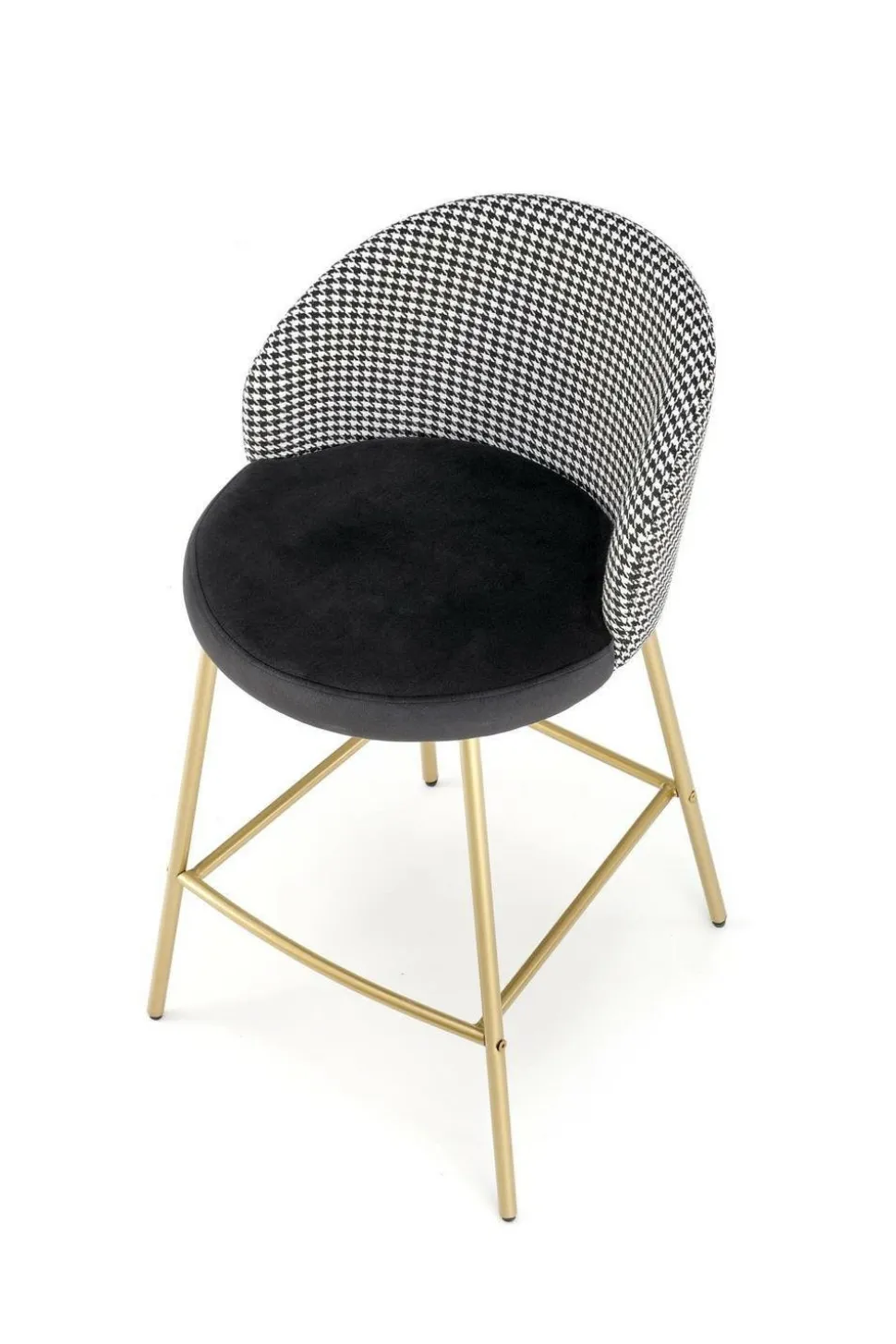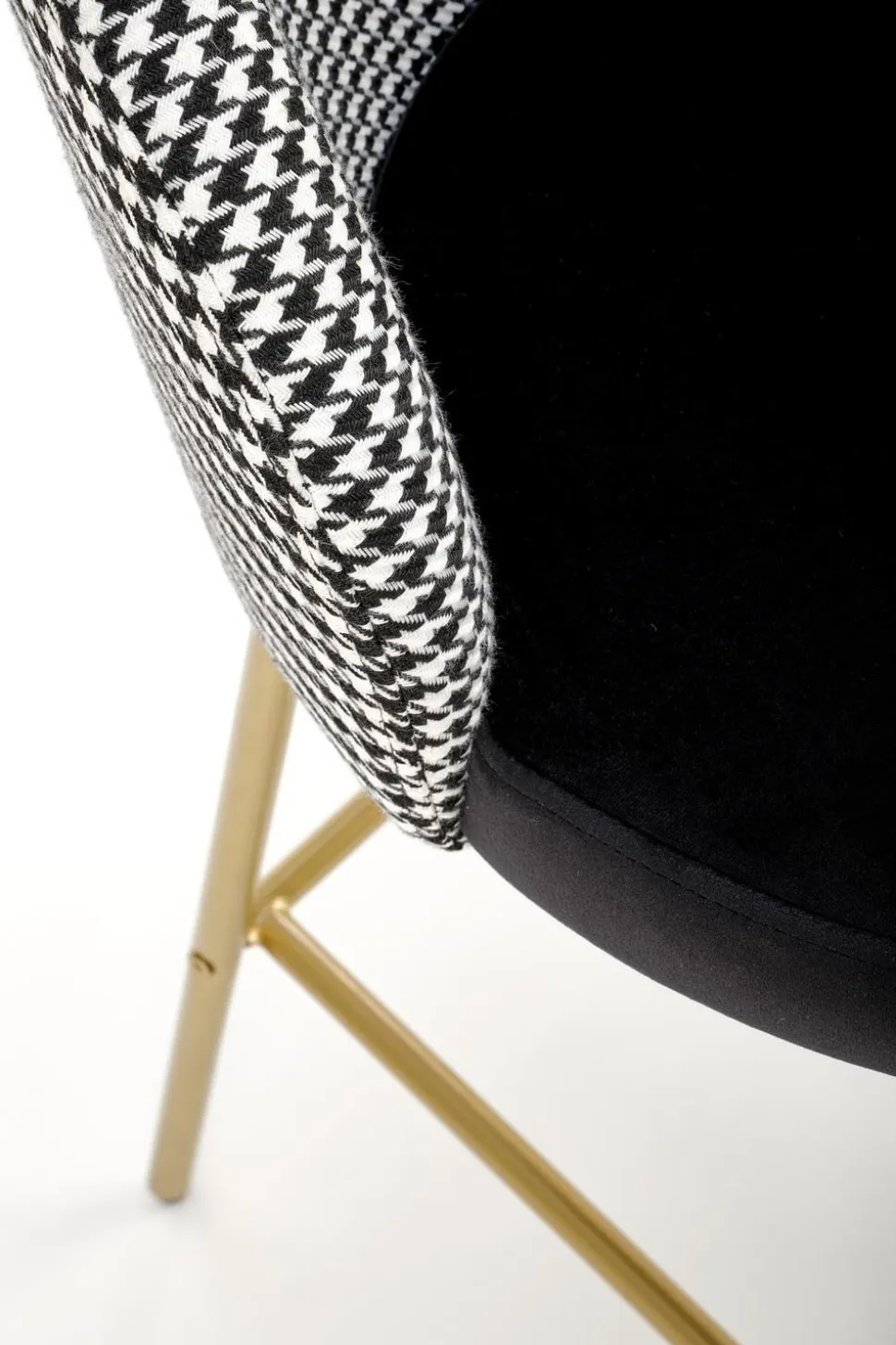 Tkanina w połączeniu ze stalową konstrukcją malowaną proszkowo zapewniają solidność i stabilność hokera. Jednym z głównych atutów hokera Edessa jest jego wyjątkowy design. Pepitkowy wzór w złotym kolorze nadaje mu niepowtarzalnego charakteru i sprawia, że staje się on prawdziwą ozdobą pomieszczenia. Dostępny również w kolorze czarno-białym, hoker Edessa doskonale komponuje się zarówno z nowoczesnymi, jak i klasycznymi aranżacjami wnętrz.