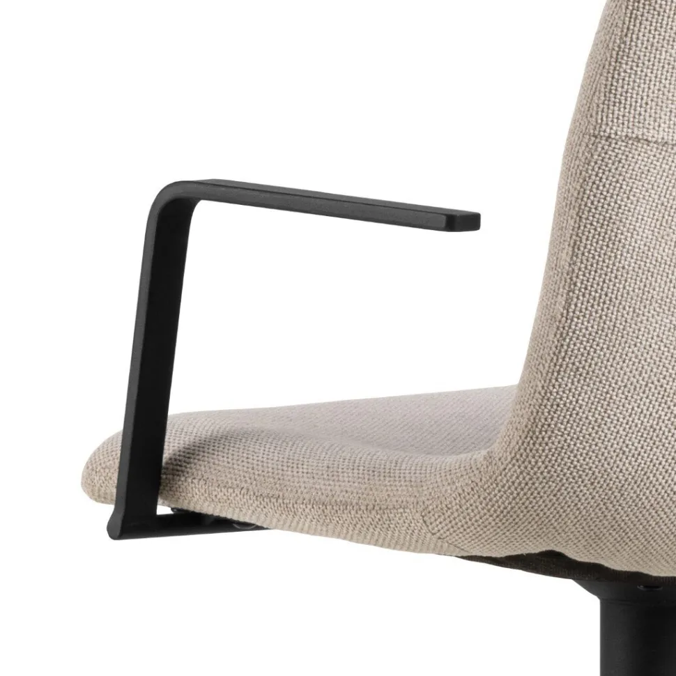 Hoker Pablo beżowy/czarny Caso 3 wyposażony jest w obrotową podstawę z czterema gwiazdkami, wykonaną ze stali malowanej proszkowo na czarno. Pozwala to na łatwe przemieszczanie się, co jest szczególnie przydatne w kuchni czy jadalni. Dodatkowo, hoker posiada wygodne podłokietniki, które zwiększają komfort użytkowania.