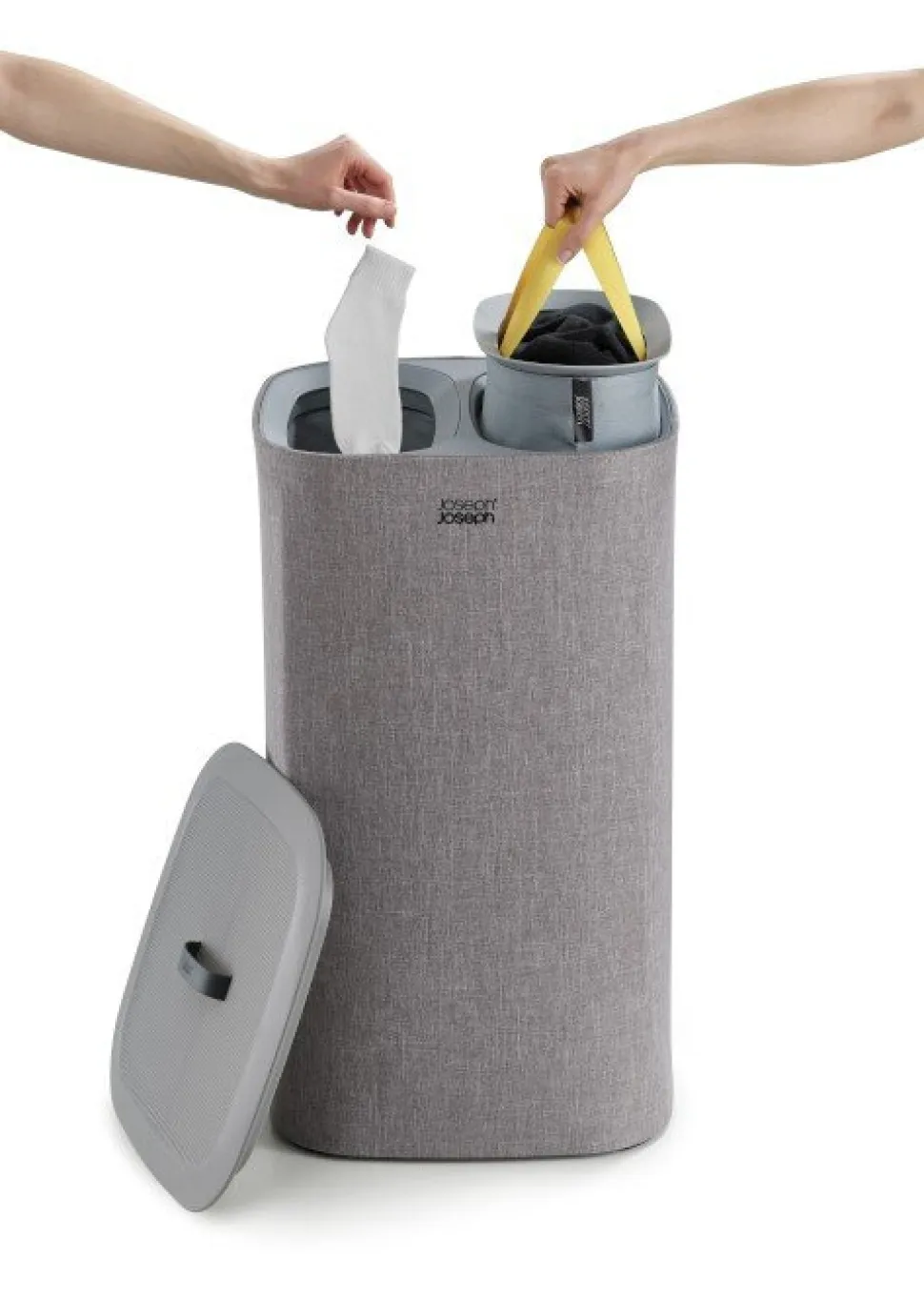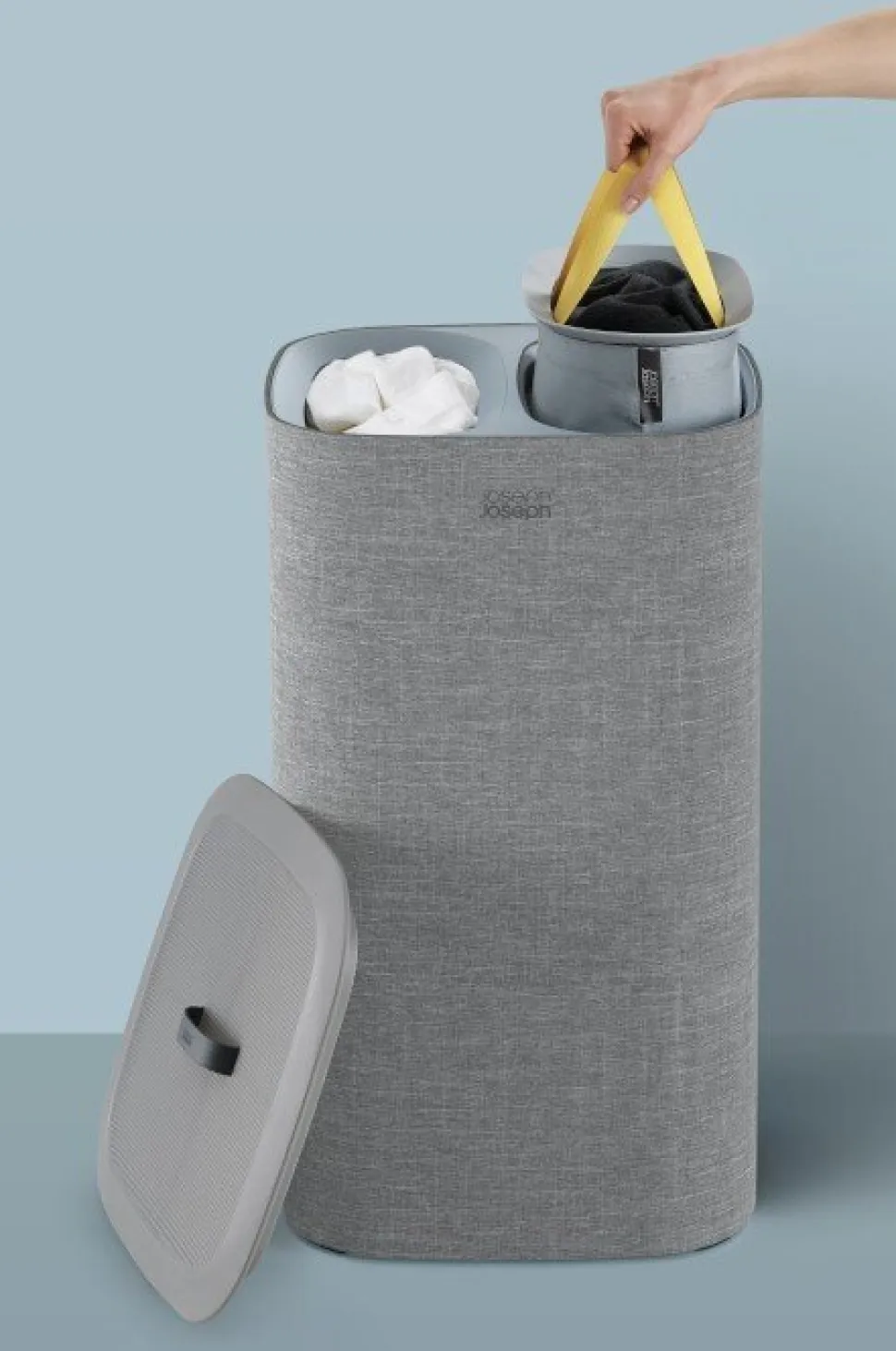 Przedstawiamy kosz na pranie marki Joseph Joseph, który z powodzeniem sprosta wyzwaniom współczesnego domu. Ten elegancki kosz na pranie o pojemności 60l. pozwala na łatwe i praktyczne sortowanie prania dzięki dwóm komorom. Każda komora pomieści aż 30l. prania, co jest idealne dla dużych rodzin lub osób, które lubią mieć wszystko pod kontrolą. Jego uniwersalny szary kolor pasuje do każdej aranżacji wnętrza, a wygodne pokrywy gwarantują dyskrecję i czystość.