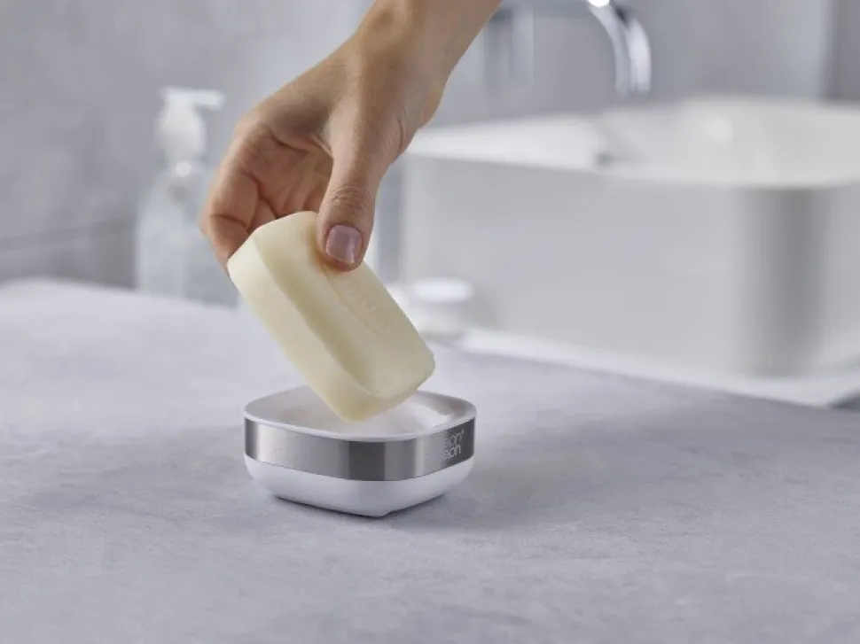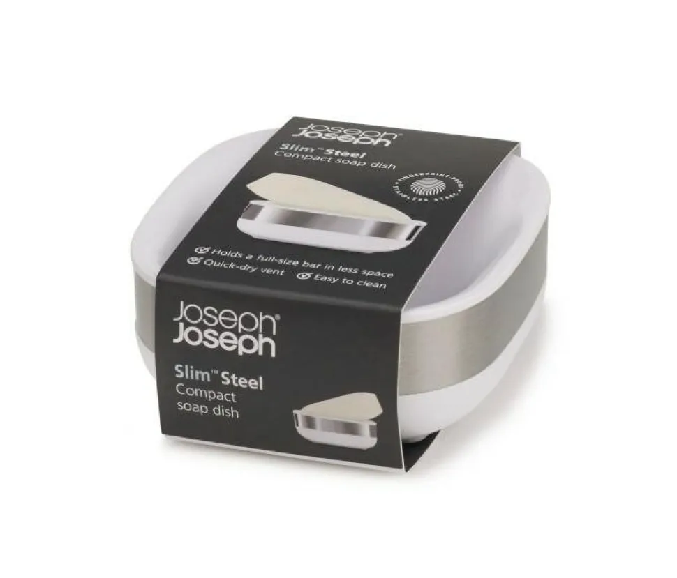 Marka Joseph Joseph słynie z tworzenia praktycznych i stylowych akcesoriów do domu. Mydelniczka Slim nie jest wyjątkiem. Wyposażona w otwór wentylacyjny i antypoślizgowe nóżki, gwarantuje bezpieczeństwo i wygodę użytkowania. Biały kolor korpusu w połączeniu z srebrnym wykończeniem nadaje jej uniwersalnego, ale jednocześnie wyrafinowanego wyglądu.