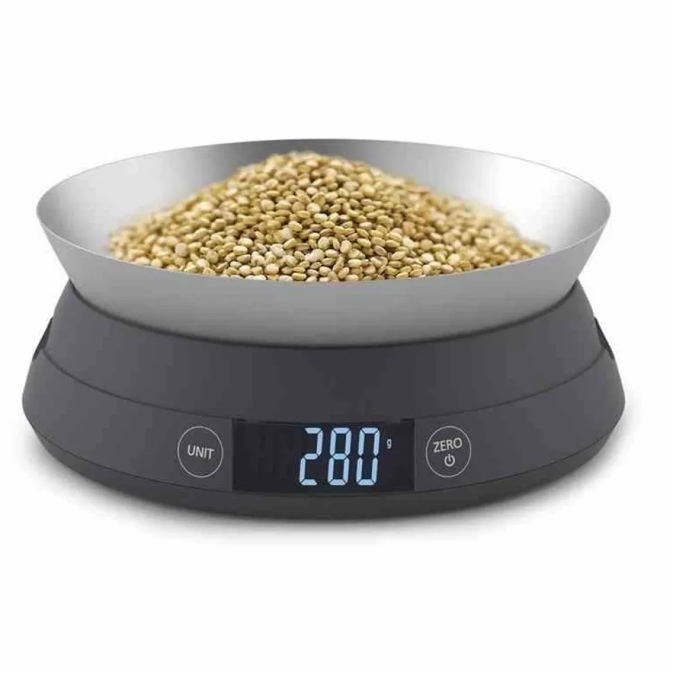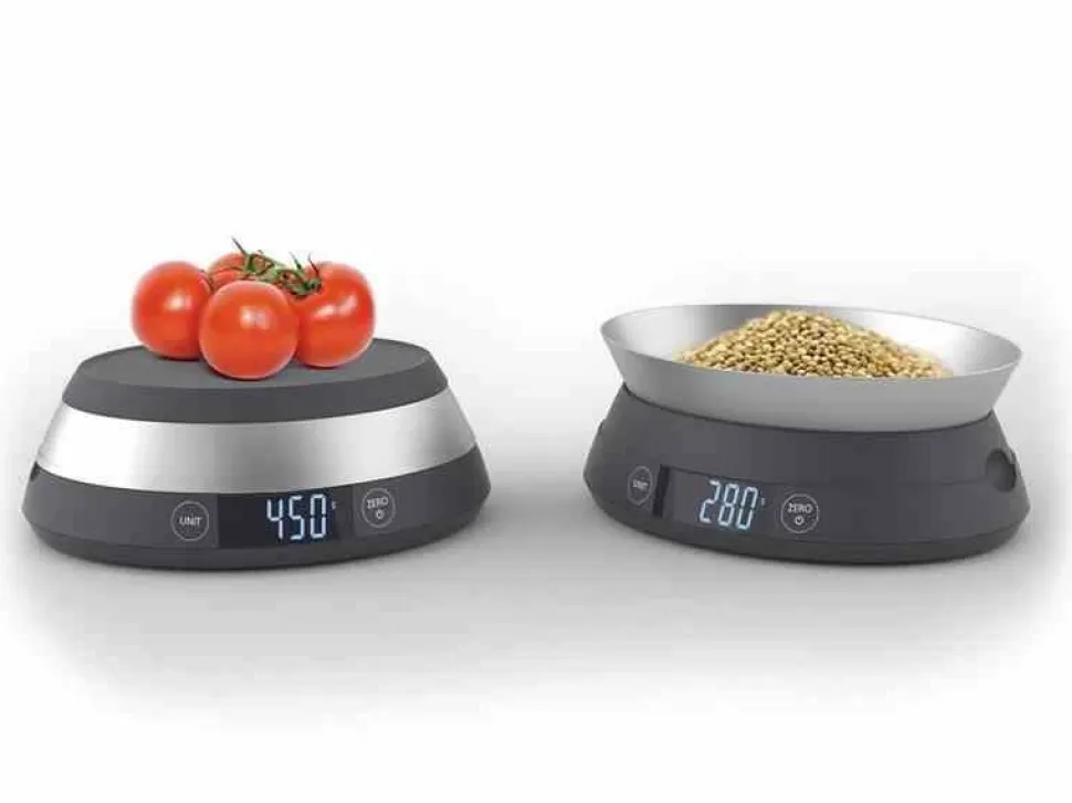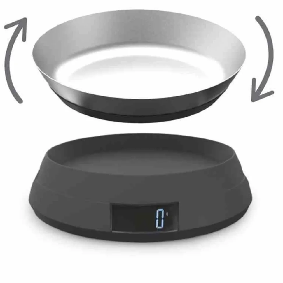 Waga składa się z dwóch części. Podstawa z wyświetlaczem LCD oraz miska, która stanowi pokrywę dla wagi jak również powierzchnie na której można ważyć produkty w torebkach czy innych opakowaniach. Po odwróceniu do miski można nasypać produkty sypkie.