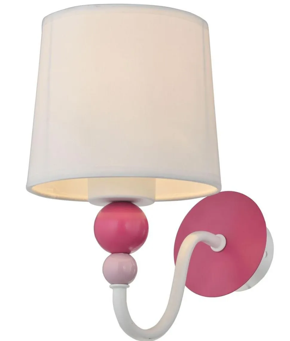 Prezentowany kinkiet Bebe to połączenie nowoczesności z klasycznym designem. Wyjątkowo delikatna podstawa w kolorze różowym z dekoracyjnymi kulkami w dwóch odcieniach różu, dopełnia gładki, kremowy abażur wykonany z tkaniny. Produkt został stworzony z myślą o małych księżniczkach, ale z pewnością znajdzie uznanie również wśród starszych miłośników pastelowych barw. Kinkiet Bebe doskonale sprawdzi się w sypialni, salonie, przedpokoju, pokoju młodzieżowym czy jadalni.