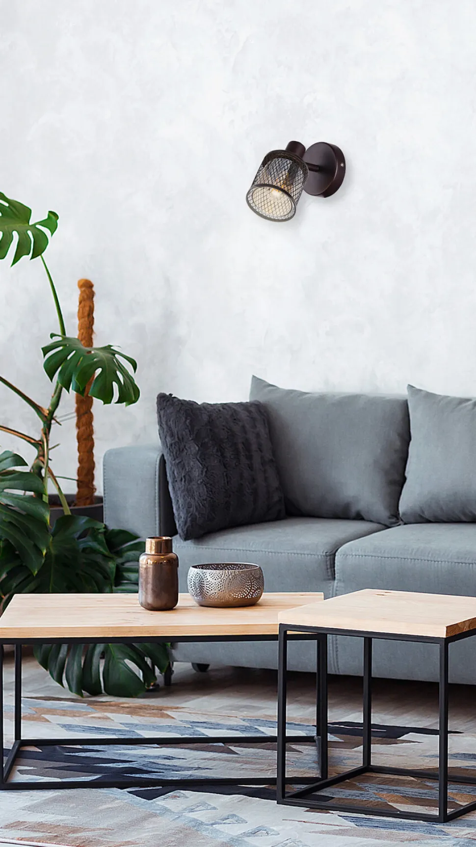 Kinkiet Canabera to doskonałe połączenie stylu loftowego i industrialnego, które z powodzeniem odnajdzie się w każdym wnętrzu. Marka CANDELLUX LIGHTING zadbala o to, by produkt był nie tylko funkcjonalny, ale również stanowił wyrazisty element dekoracyjny. Szklany klosz w kolorze bursztynowym, osadzony w ażurowym stalowym koszyku, dodaje całości niezwykłego uroku.