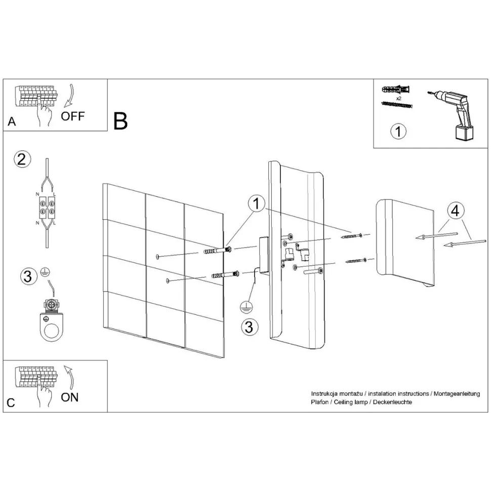- Źródło światła: G9, 2x max 8W LED, ~230V, 50Hz, IP20, klasa ochronności I. Źródło światła nie jest w komplecie.