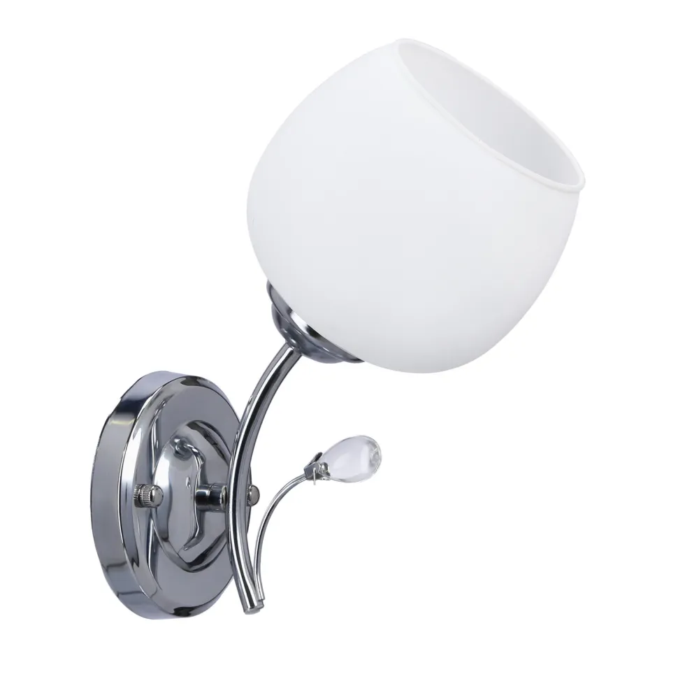 Chromowy kinkiet z białym kloszem – uniwersalne oświetlenie do każdego pomieszczenia