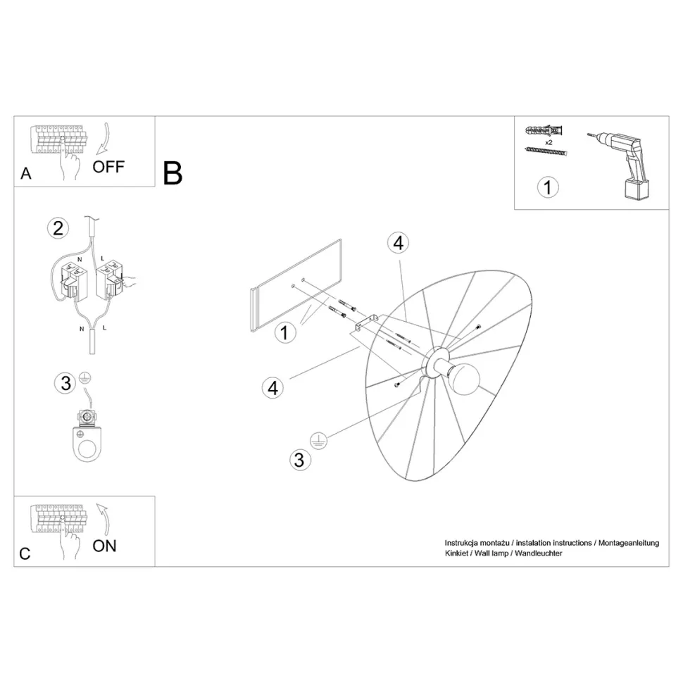 - Kinkiet/plafon jest łatwy w montażu i obsłudze, a wymiana żarówki nie stanowi problemu.