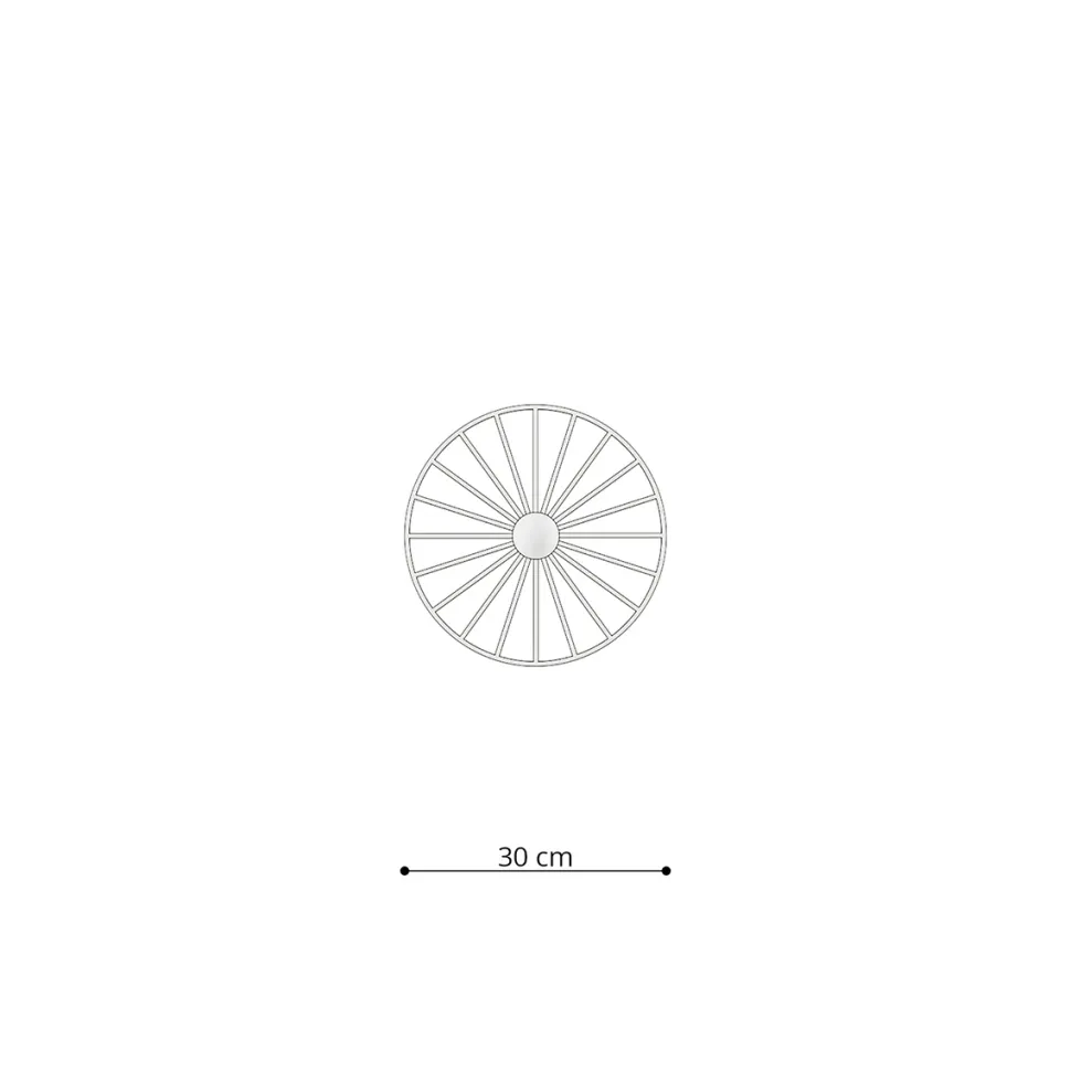 PlafonSirkel o średnicy 45cm to metalowy abażur budową przypominający koło od wozu. Okrągły, płaski abażur z cienkimi czarnymi przęsłami wykonany został z metalu malowanego proszkowo na czarno.