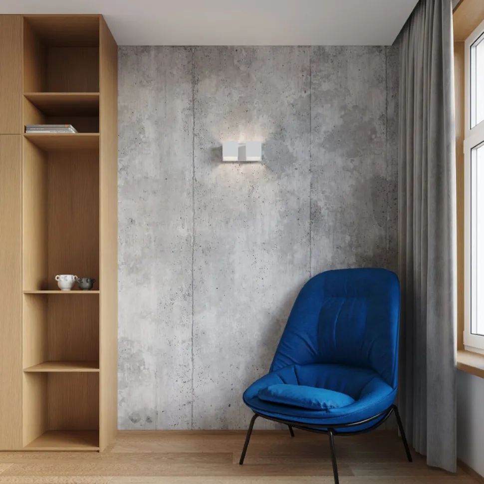 Choć brzmi to dosyć antonimicznie to jest to prawda- kinkiet Quad to przedmiot stworzony w industrialnym i surowym stylu, który jednakociepli wnętrzeswoim materiałem wykonania i emitowanym światłem. Jego geometryczna i prostopadłościenna forma jest bardzominimalistyczna i loftowa, ale sposób rozpraszania światła ciepły i delikatny. Po włączeniu, lampa dodawać będzienastrojowego klimatui świetnie sprawdzi się w przestrzeniach w skandynawskim lub nowoczesnym stylu.