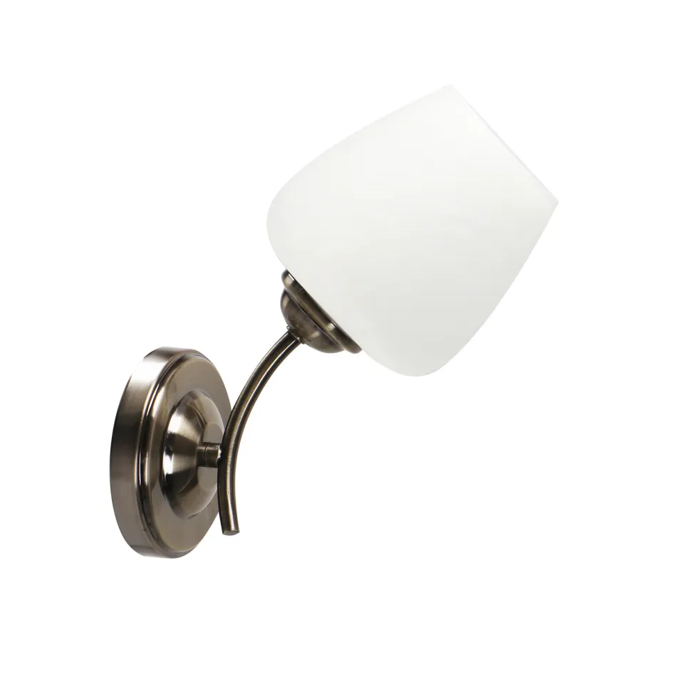 - Patynowy kolor i biały klosz lampy idealnie komponują się z różnymi stylami wnętrz.