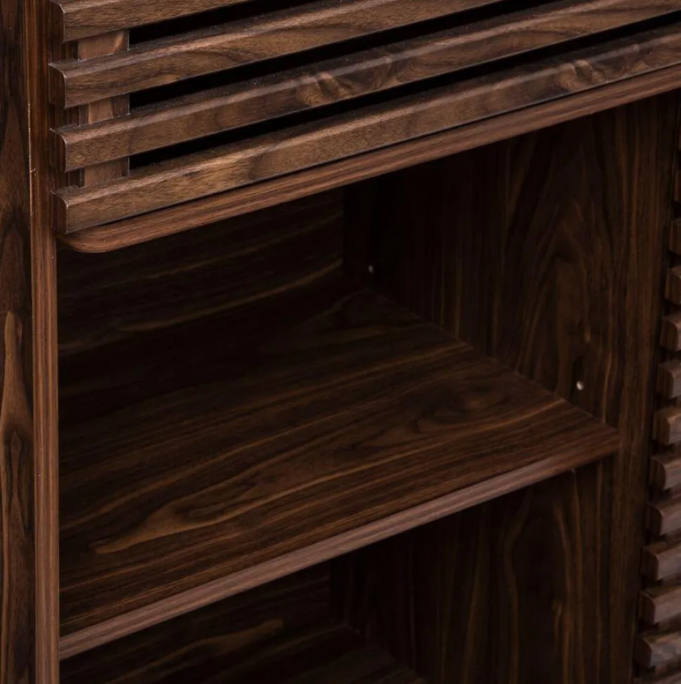 Przedstawiamy wyjątkowy mebel Twojego salonu — komodę Asmar! Ten komoda jest produkowana w Indonezji, co sprawia, że naprawdę wyróżnia się na tle innych kolekcji mebli. Ciemnobrązowy kolor i niezwykłe listwy kryjące dwie półki sprawiają, że komoda wygląda jak prawdziwe dzieło sztuki. Dodatkowo, fronty w komodzie można przesuwać na całej szerokości — co sprawia, że całość jest jedyna w swoim rodzaju.