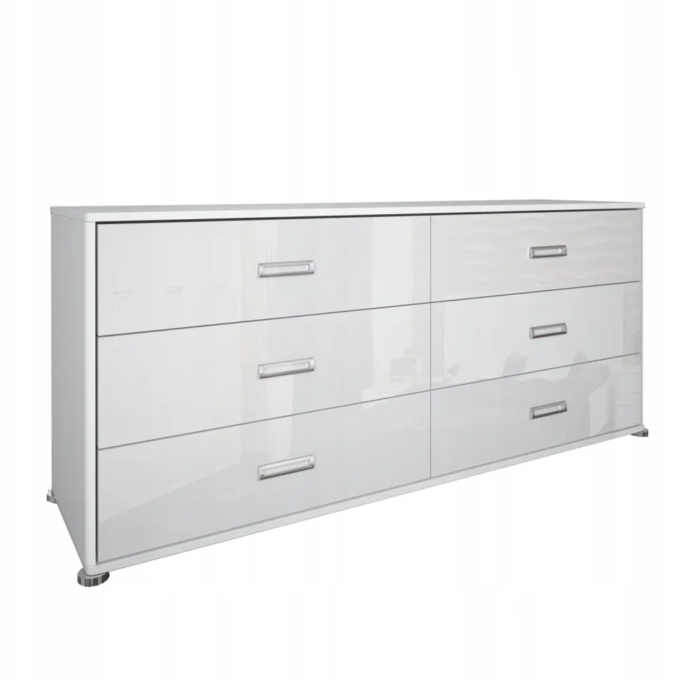 Dzięki szufladom i blatom takie meble są pojemne i kompaktowe, co jest głównym kryterium przy wyborze mebli do małych, a także dużych pokoi. Komoda Bella charakteryzuje się eleganckim, białym połyskiem, który dodaje nowoczesnego i stylowego wyglądu każdemu wnętrzu. Jej sześć pojemnych szuflad zapewnia mnóstwo miejsca na przechowywanie ubrań, dokumentów, akcesoriów i innych przedmiotów, pomagając utrzymać porządek w sypialni.