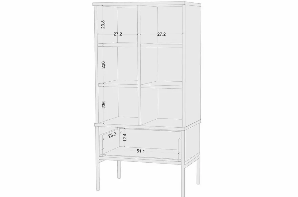 Poza walorami estetycznymi komoda Skandica POLKA zatrzymuje uwagę również praktycznymi aspektami. Prostokątna konstrukcja szafki dzieli się na dwie przestrzenie do przechowywania – z dwiema zamkniętymi szafkami oraz jedną, pojemną szufladą. Wysokie nóżki umożliwiają łatwe utrzymanie czystości pod meblem.Zastosowane w niej rozwiązania techniczne czynią z tego mebla, komodę łatwą i wygodną w obsłudze. Szuflady – pomimo zastosowania uchwytów – otwierają się za pomocą systemu „Push to Open” – dzieje się to automatycznie po lekkim naciśnięciu na front mebla. Posiadają także funkcję cichego domyku; ulokowane są na niewidocznych prowadnicach, dzięki czemu te niezbyt estetyczne elementy są praktycznie niewidoczne.Płyta meblowa: grubość 18 mmNóżki: metalowe; kolor złotyUchwyty do szuflad: złote