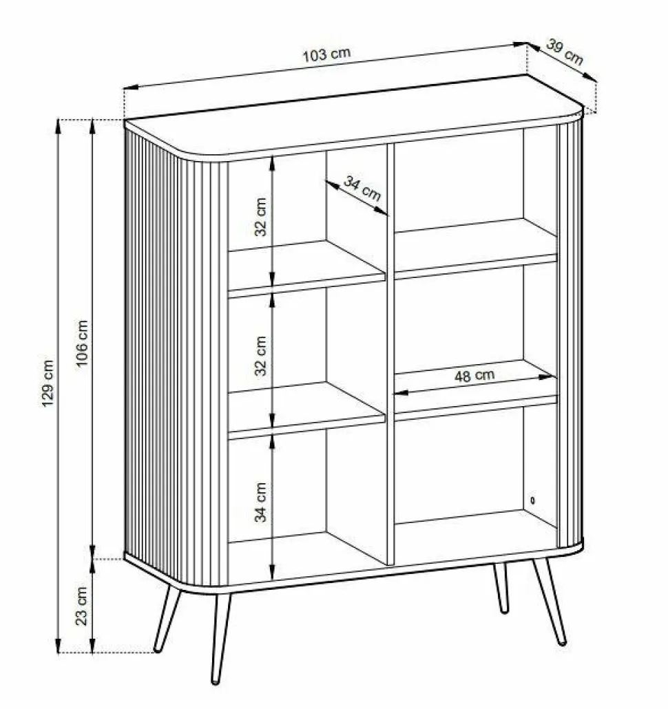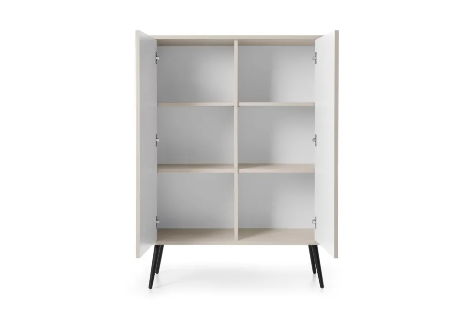 - Estetyczny wygląd komody dzięki frezowanym detalom, metalowym uchwytom i nóżkom nadaje wnętrzu elegancki i nowoczesny charakter