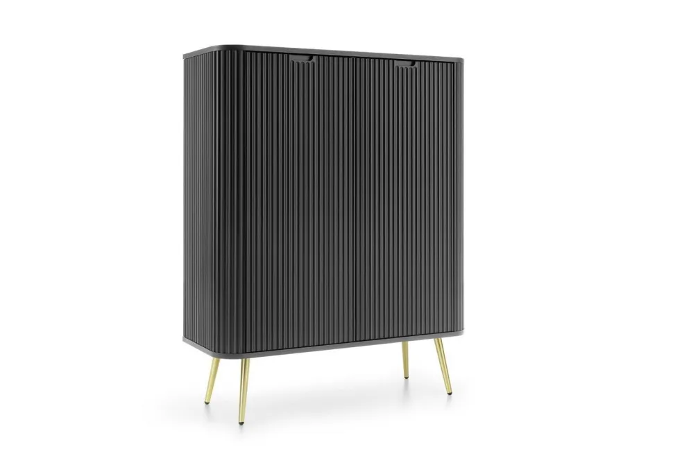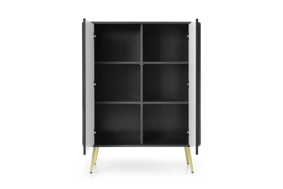 Komoda wysoka Seda w kolorze czarnym z nogami w złotym wykończeniu to wyjątkowy mebel, który łączy w sobie elegancję i funkcjonalność. Jej minimalistyczny design sprawia, że idealnie wpasuje się w nowoczesne wnętrza, dodając im luksusowego charakteru. Komoda została zaprojektowana z myślą o osobach ceniących sobie zarówno estetykę, jak i praktyczność.