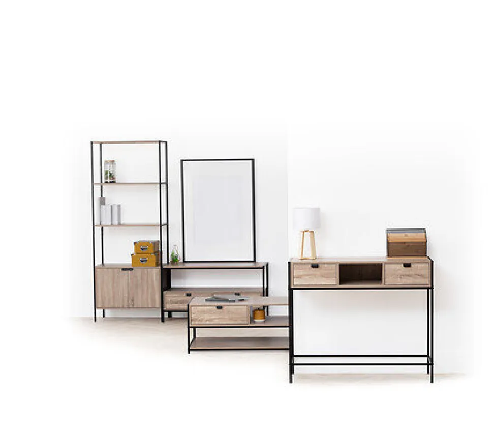 - Konsola Aliaj naturalna to mebel o wyjątkowej estetyce, który wpisuje się w trendy loftowe i industrialne.
