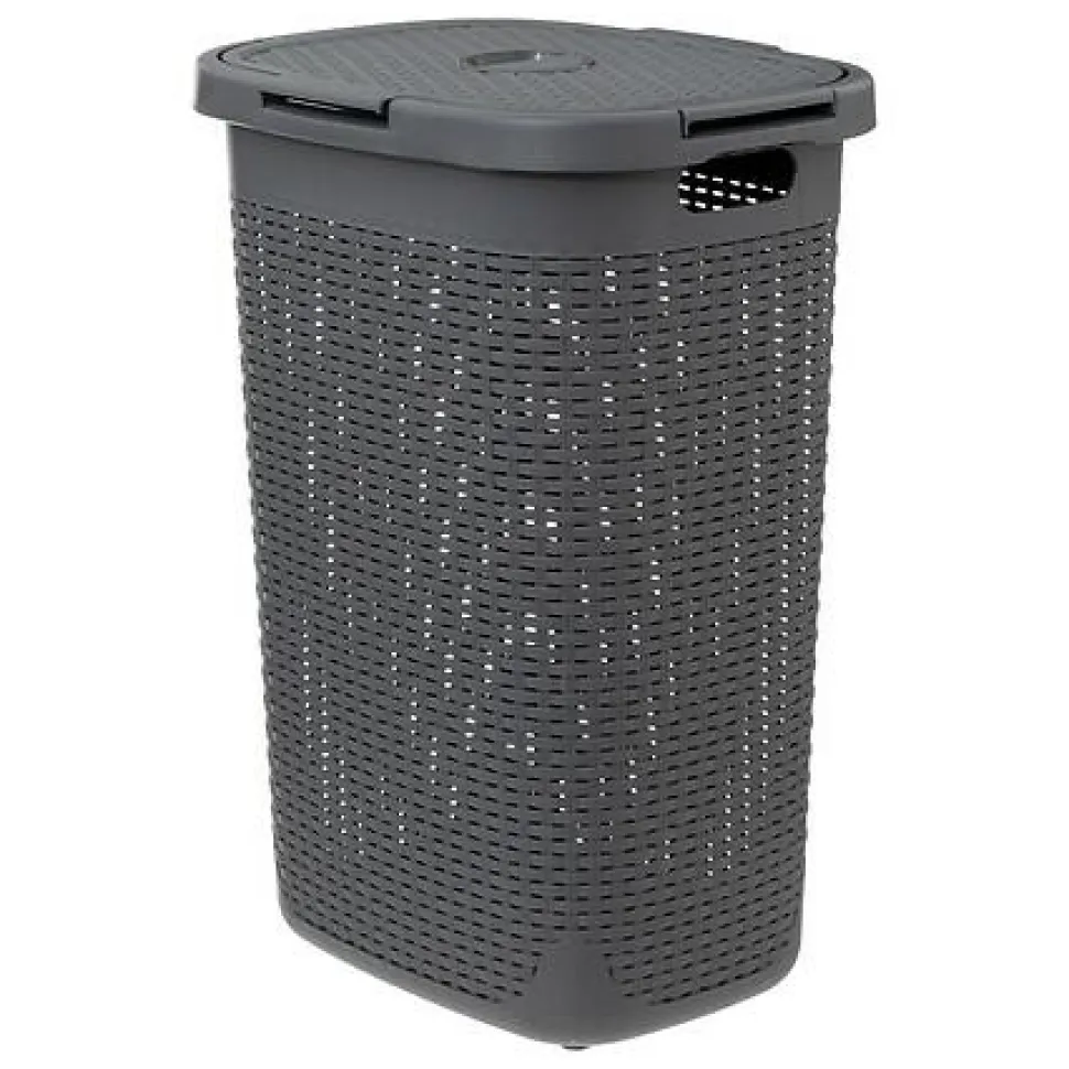 Kosz na pranie 60 l rattan syntetyczny szary – praktyczność i styl w jednym