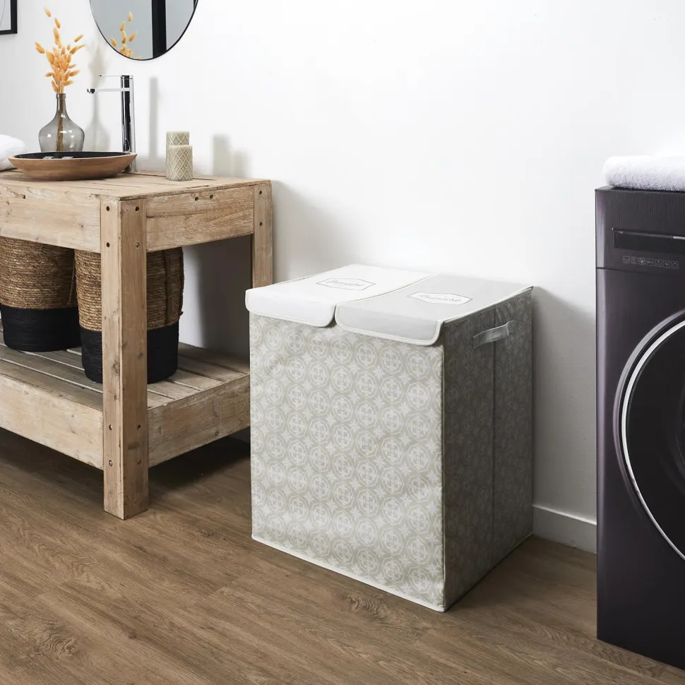 Kosz na pranie podwójny 50x41x57 szary tkanina – elegancja i funkcjonalność