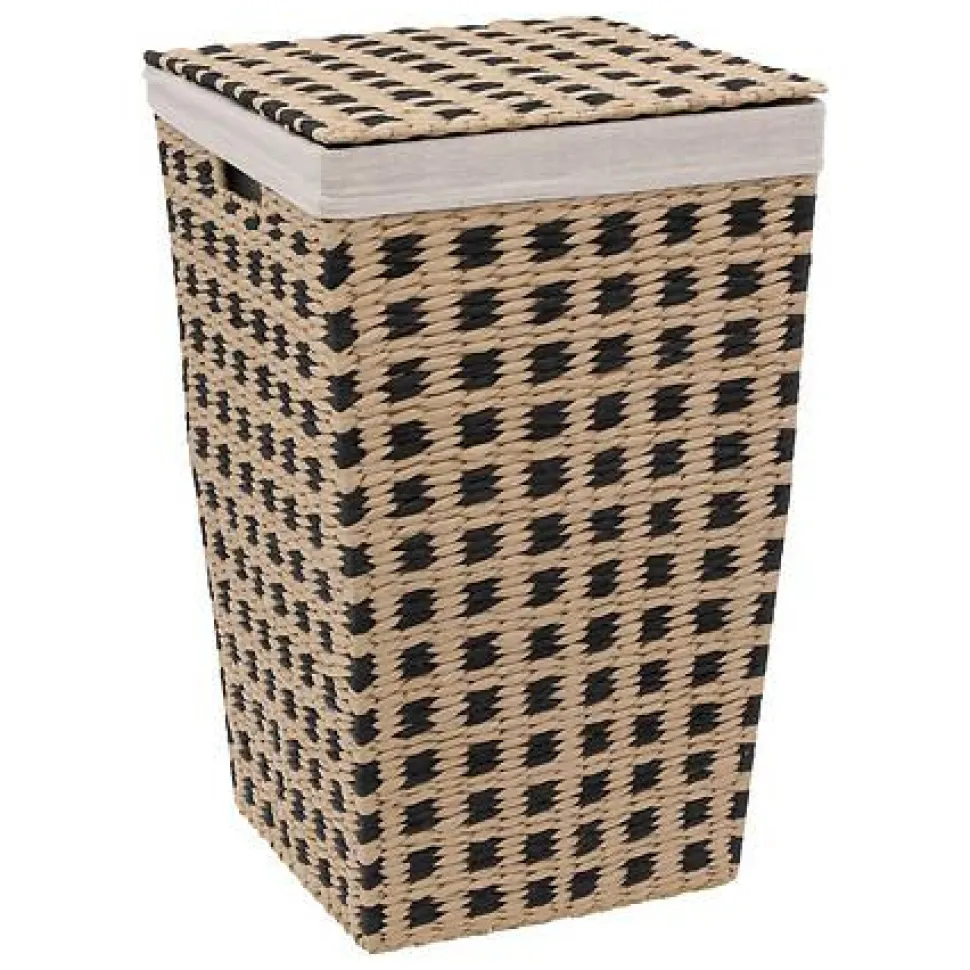 Kosz na pranie Terre Inconnue o pojemności 40 litrów w kolorach naturalnym i czarnym to stylowy i funkcjonalny dodatek do Twojego domu. Wykonany z papierowego sznurka, prezentuje się elegancko i naturalnie, idealnie wpisując się w różnorodne style wnętrz, od skandynawskiego po boho. Prostokątny kształt kosza sprawia, że łatwo go umieścić w każdym kącie łazienki, sypialni czy pralni, nie zajmując przy tym zbyt wiele miejsca.