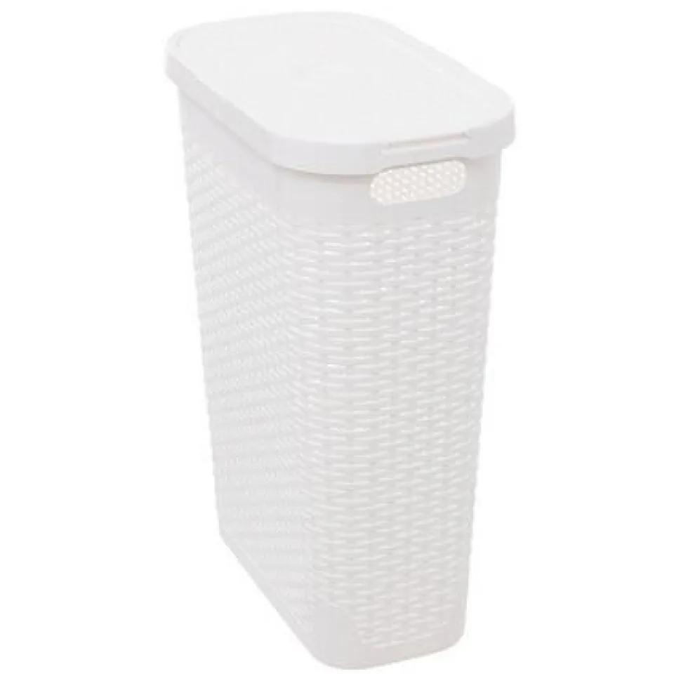 Kosz na pranie wąski 40 l rattan syntetyczny biały – idealne rozwiązanie dla Twojej łazienki lub pralni