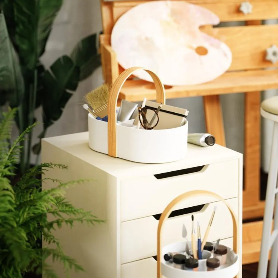 Bellwood to świetny pomysł na zorganizowanie kosmetyków w łazience czy innych niewielkich przedmiotów. Dzięki niemu bałagan w twojej łazience zniknie. Jego dolna część w kolorze białym połączona jest z drewnianą rączką w naturalnym kolorze. Wyposaż się w inne meble z serii Bellwood i urządź swoją łazienkę w jednolite dodatki!