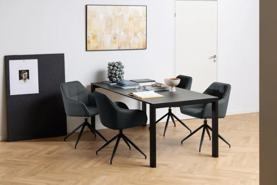 KRZESŁO BRENDAto wyjątkowy model o wielu zaletach. Zwraca na siebie uwagę przede wszystkim niecodziennym kształtem podstawy, który składa się z 4 rozchodzących się na boki nóg. Takie rozwiązanie wygląda bardzo nowocześnie, a także sprawia, żekrzesło może się obracać. Malowana proszkowo na czarno podstawa powstała z wytrzymałego metalu, aby pięknie dopełnić miłą w dotyku tapicerkę. Siedzisko posiada obszerny kształt przypominający fotel z podłokietnikami i wypełnione jest pianką poliuretanową, która zapewnia wysoki komfort podczas siedzenia. Obicie z wykorzystaniem tkaniny Preston posiada ciekawą strukturę, którą podkreślają ciekawe łukowate przeszycia. Producent, wykorzystując dane materiały, pragnął zagwarantować jak najwyższą wygodę i trwałość krzesła.