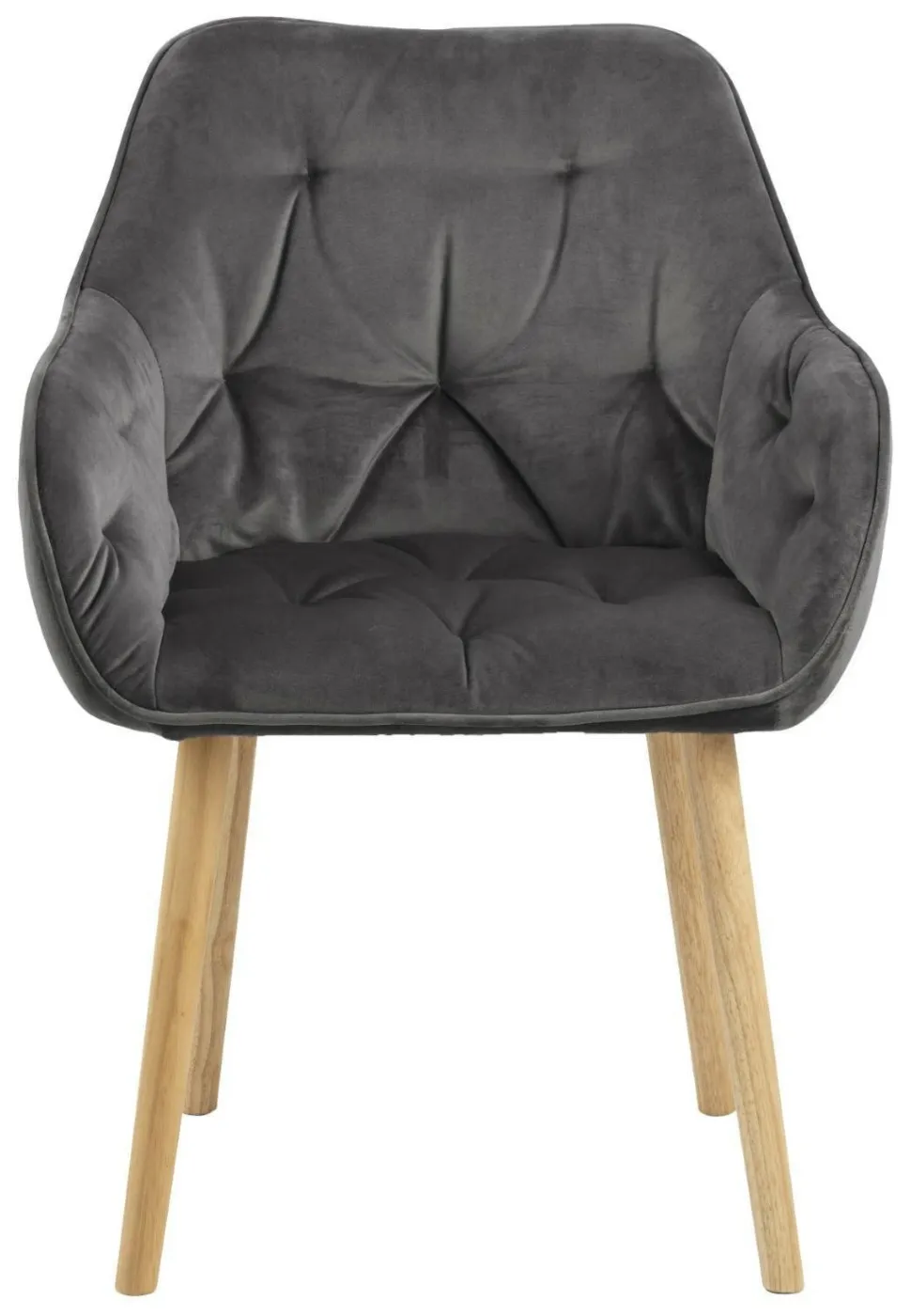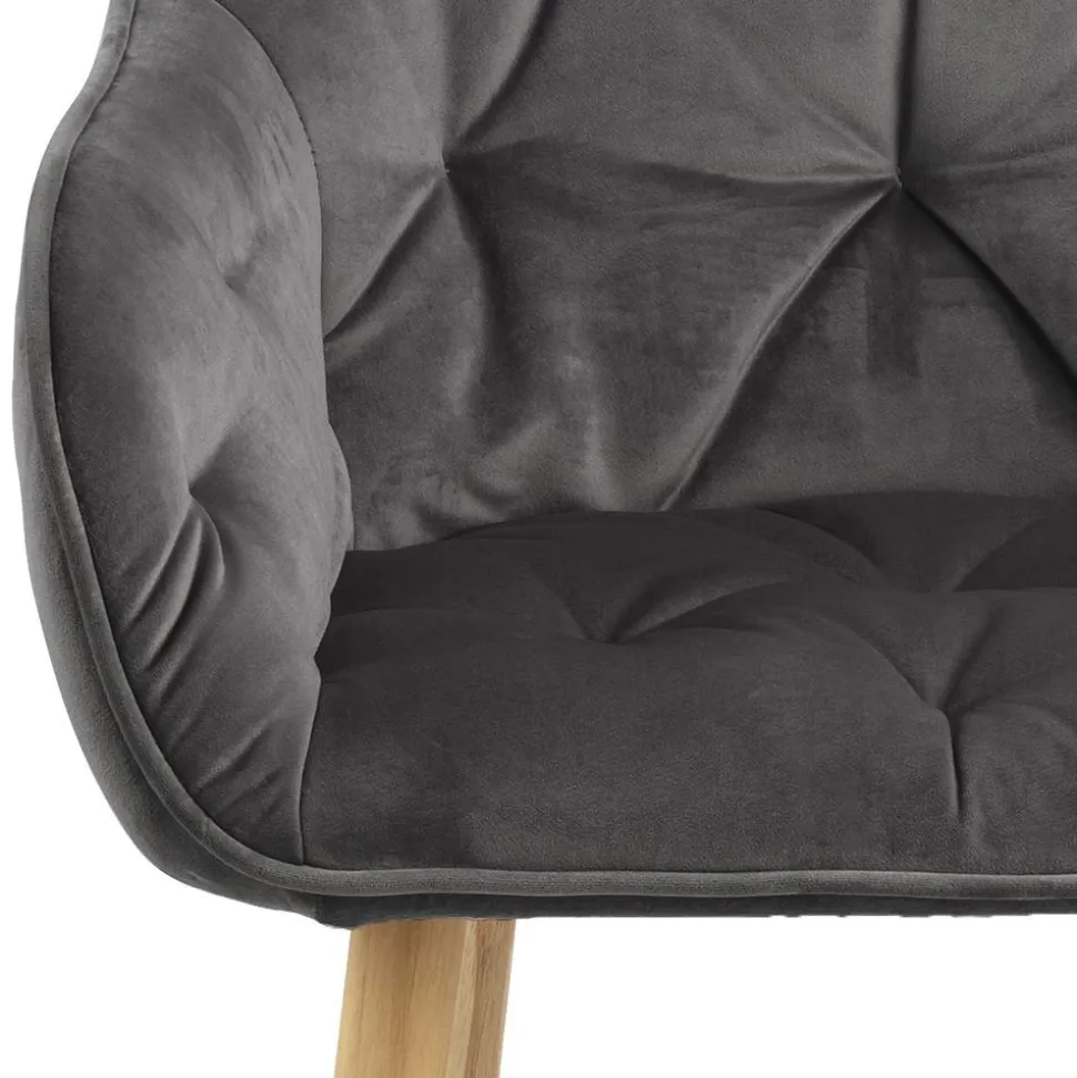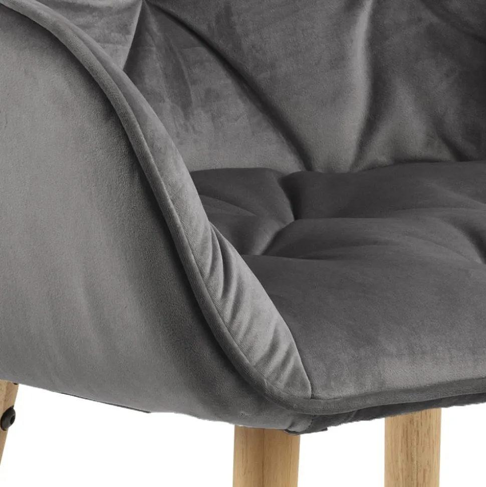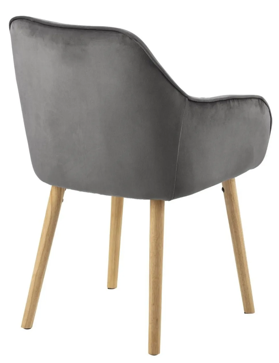 Krzesło Brooke Wood to połączenie ponadczasowych materiałów z funkcjonalną formą. Posiada idealnie wyprofilowane siedzisko z podłokietnikami o zaokrąglonych krawędziach. Obite pianką tapicerską i tkaniną pikowane krzesło będzie miejscem, w którym będziesz w stanie wygodnie spędzić długie godziny. Jego podstawa stworzona z solidnych nóg jest bejcowana na kolor dębu, natomiast użyte do jej produkcji drewno kauczukowe jest niezwykle wytrzymałe i odporne na wilgoć. Welwetowe krzesło z drewnianymi nogami będzie świetnym rozwiązaniem do salonu w stylu skandynawskim, a także doskonale posłuży jako krzesło do toaletki w sypialni glamour. Może także perfekcyjnie podkreślić charakter poczekalni lub hotelowego lobby.